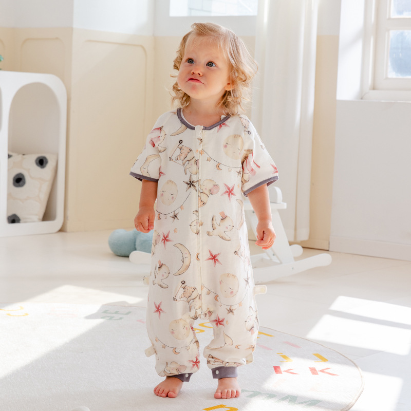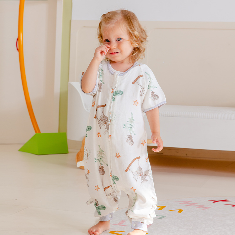 스플릿 레그 슬리핑 백 더블 레이어 거즈 반팔 아기 깜짝 놀란 어린이 슬리핑 백 여름 얇은 클래스 A 모성 및 유아 면사스토어 가기