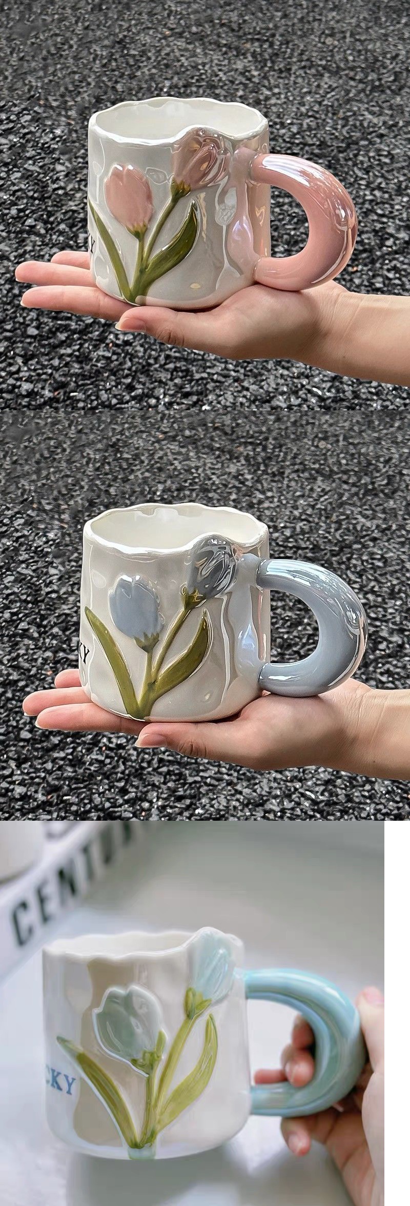 창의적인 입체 부동 꽃 튤립 소녀 하트 손으로 그린 튤립 장미 꽃 감각 가장 친한 친구 머그잔 세라믹