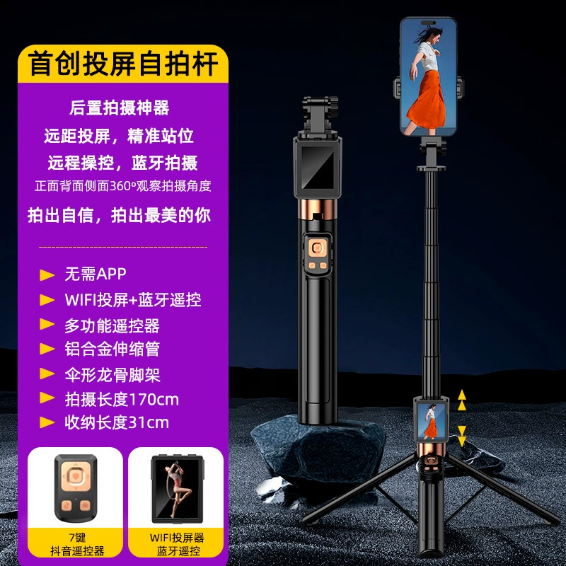 새로운 스크린 프로젝션 셀카 스틱 CL07 야외 라이브 사진 촬영 분리형 실시간 스크린 프로젝션 휴대용 바닥 삼각대