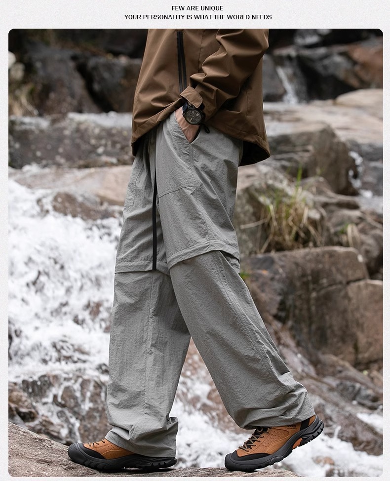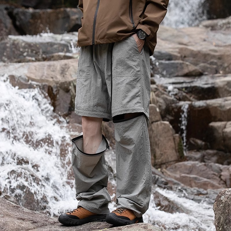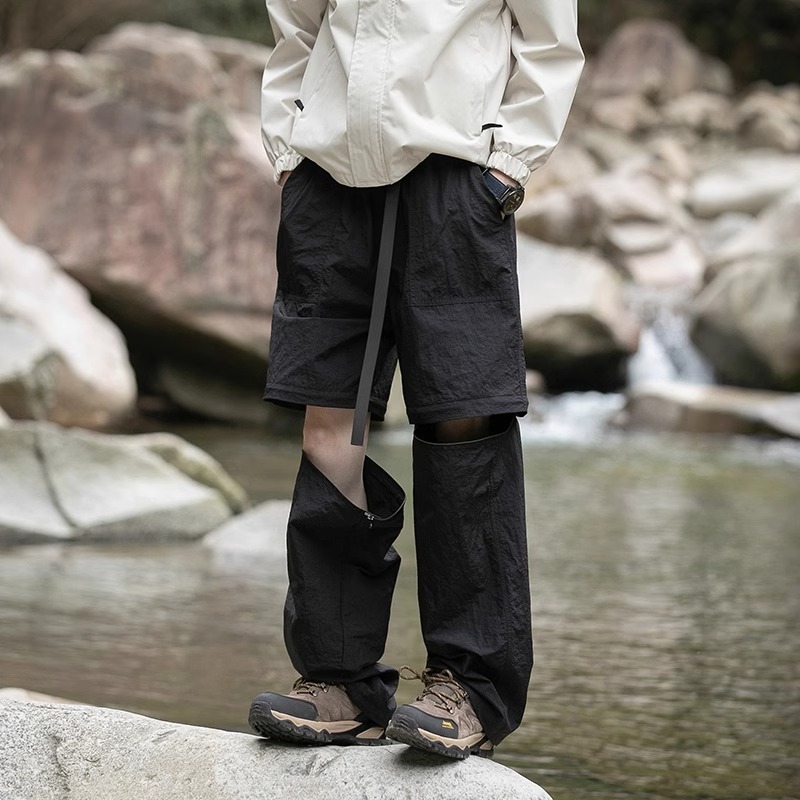 딱따구리 분리형 바지 2025 년 여름 얇은 얼음 실크 빠른 건조 반바지 스트레이트 툴링 캐주얼 낙하산 바지