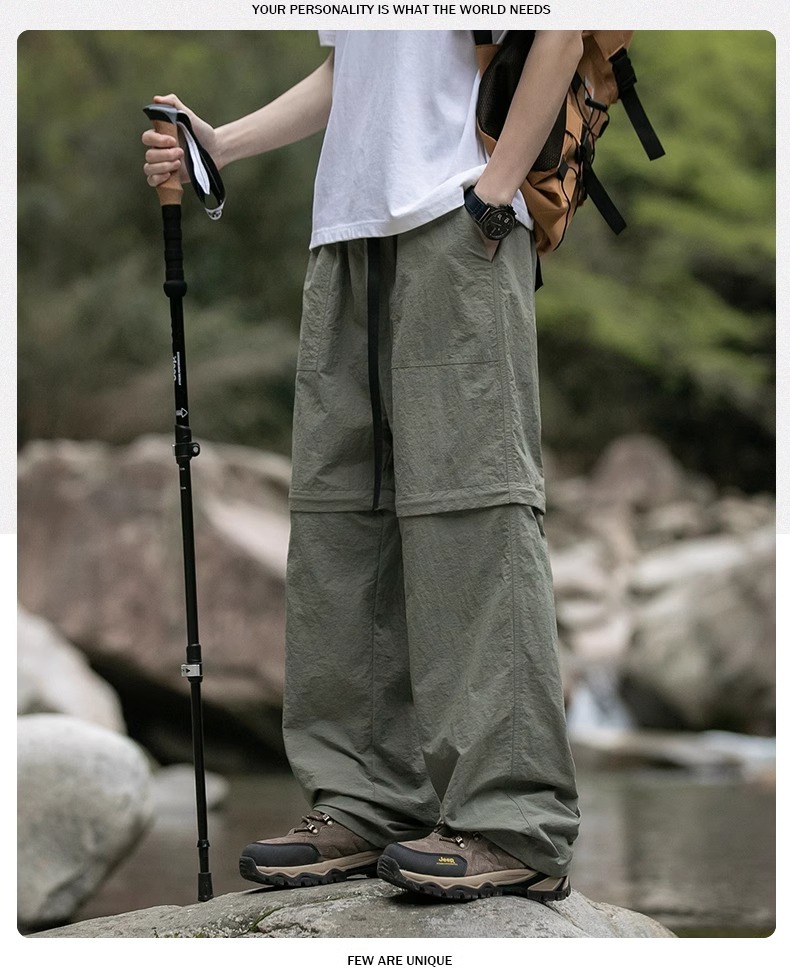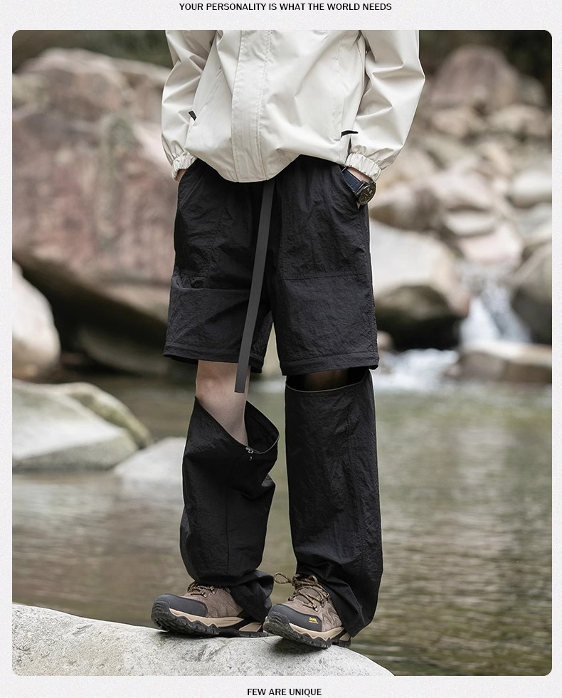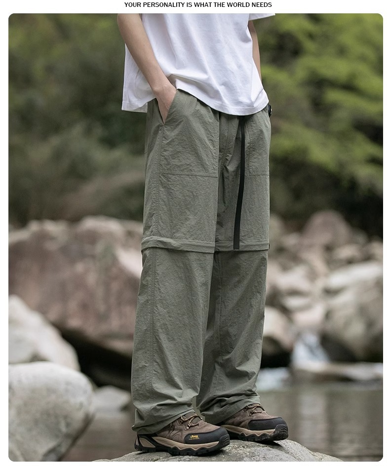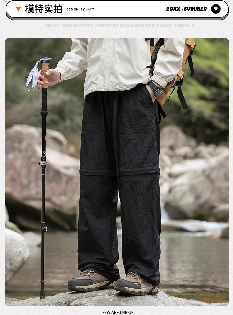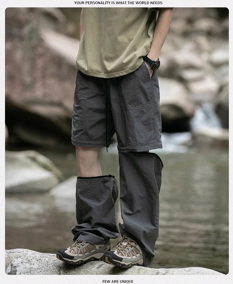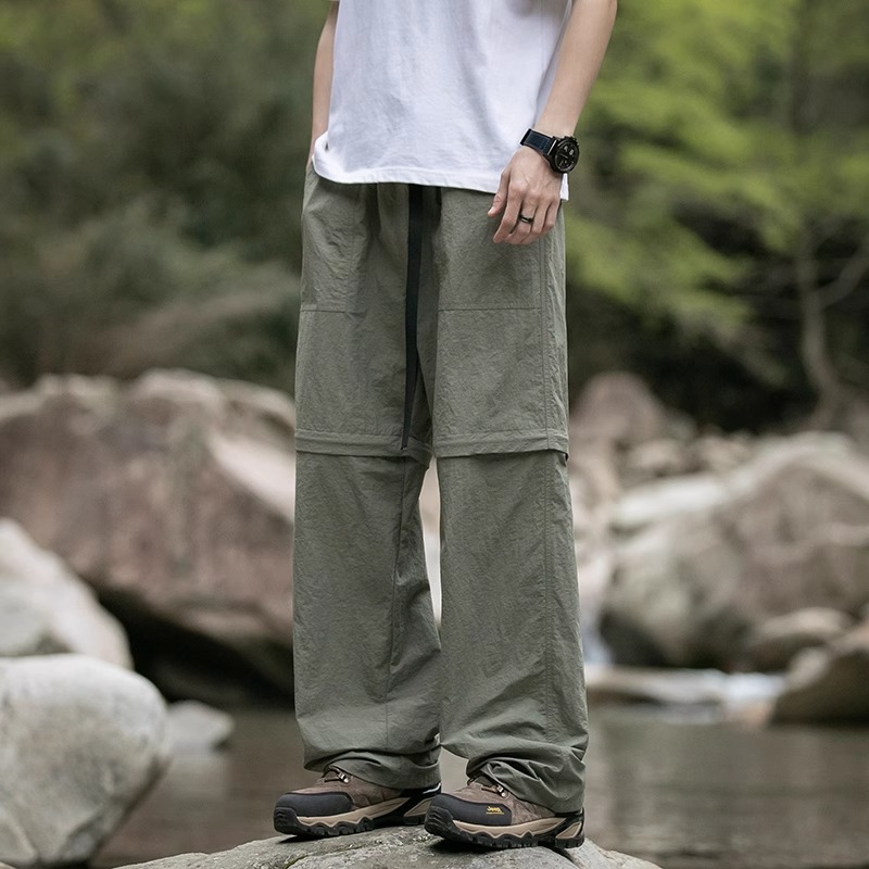 딱따구리 분리형 바지 2025 년 여름 얇은 얼음 실크 빠른 건조 반바지 스트레이트 툴링 캐주얼 낙하산 바지스토어 가기