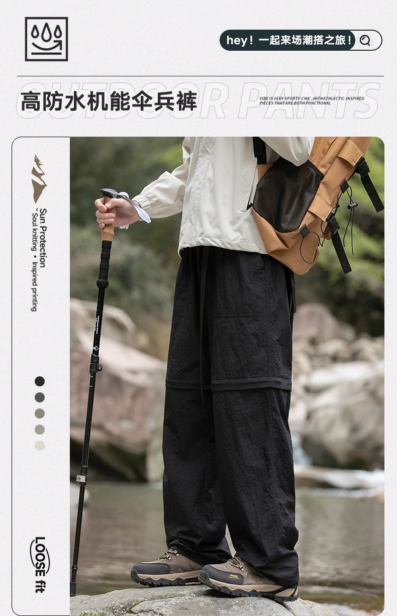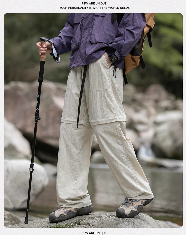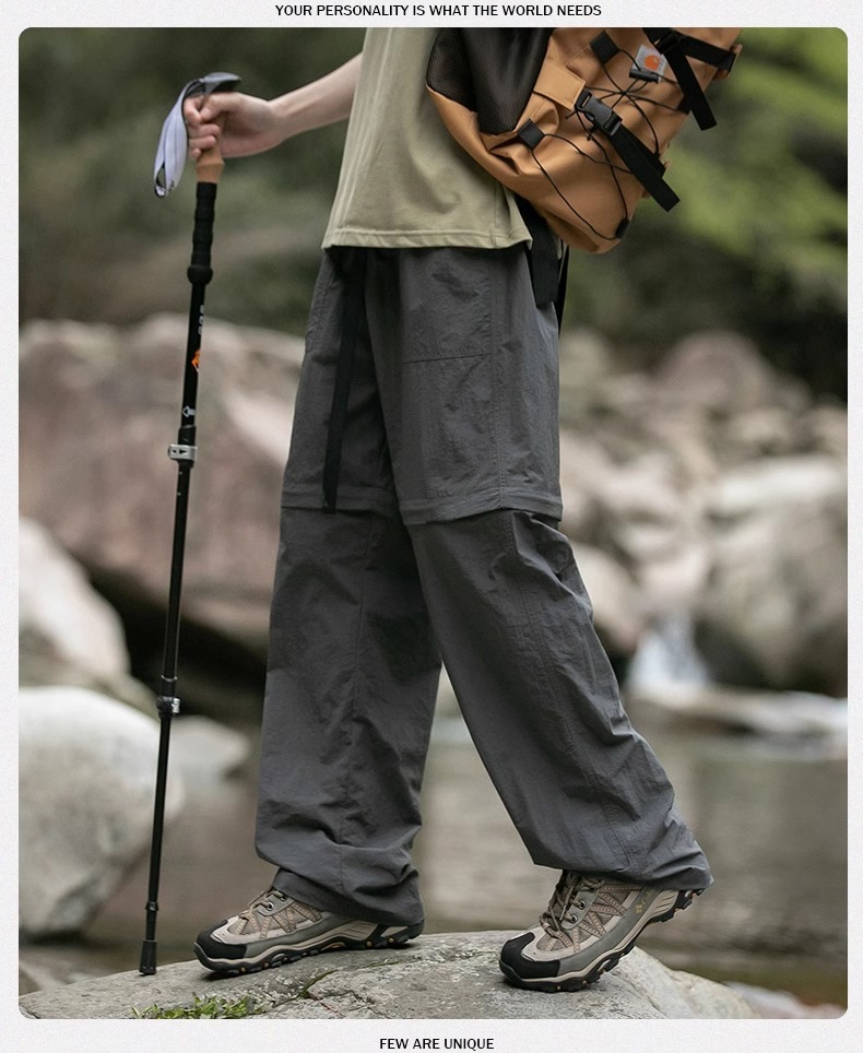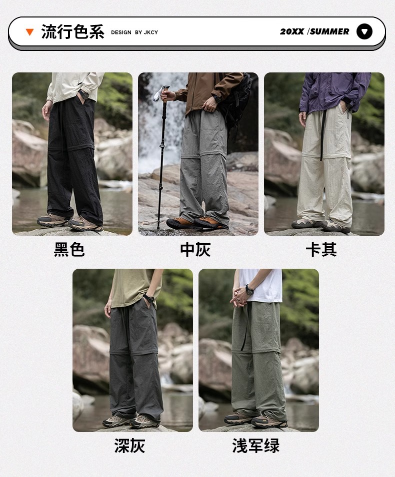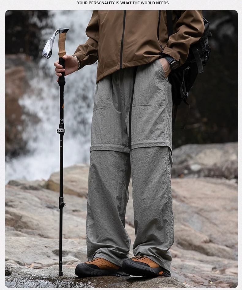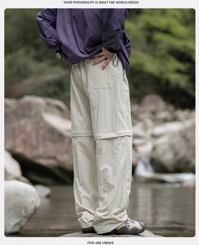 딱따구리 분리형 바지 2025 년 여름 얇은 얼음 실크 빠른 건조 반바지 스트레이트 툴링 캐주얼 낙하산 바지스토어 가기