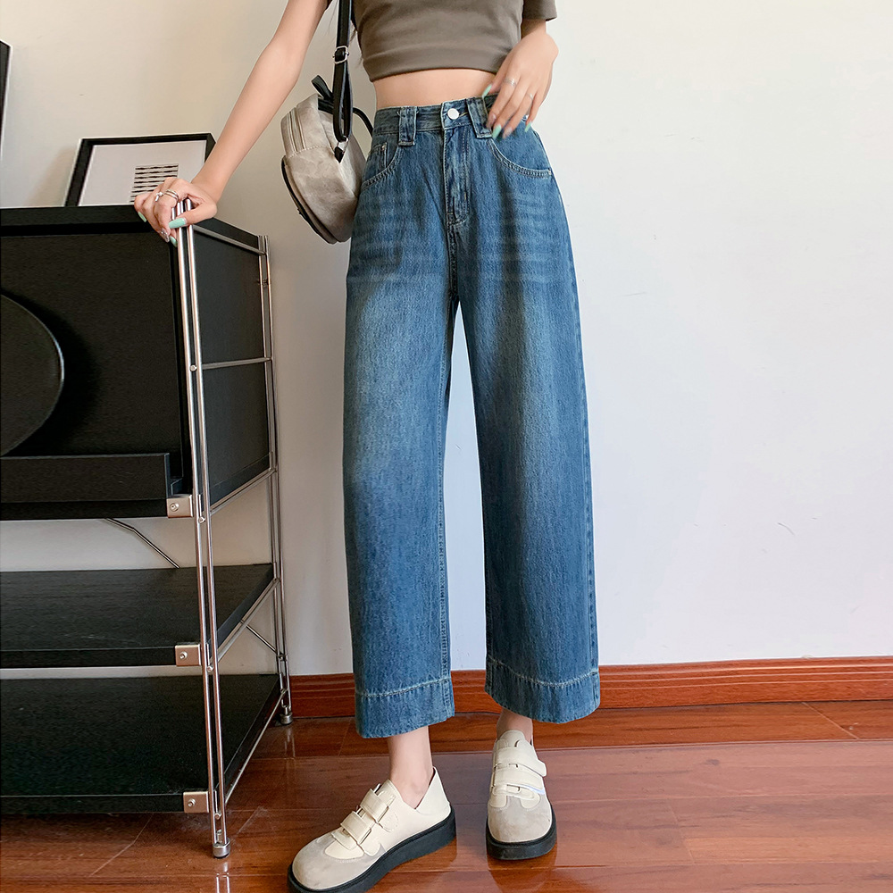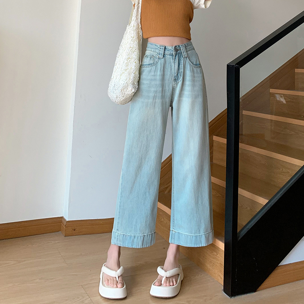2025 미국 작은 여성을위한 느슨한 밝은 색 청바지 패션 하이 엔드 딥 키가 큰 슬리밍 새로운 스타일 스트레이트 다리 바지스토어 가기