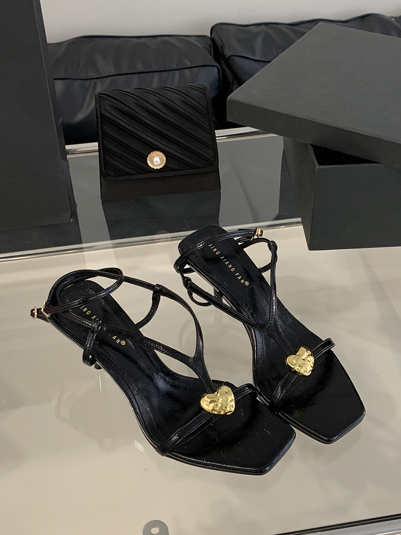 2025 여름 패션 오픈 발가락 여성 신발 프랑스 기질 광장 발가락 얇은 힐 샌들 사랑 금속 버클 얇은 스트랩 하이힐