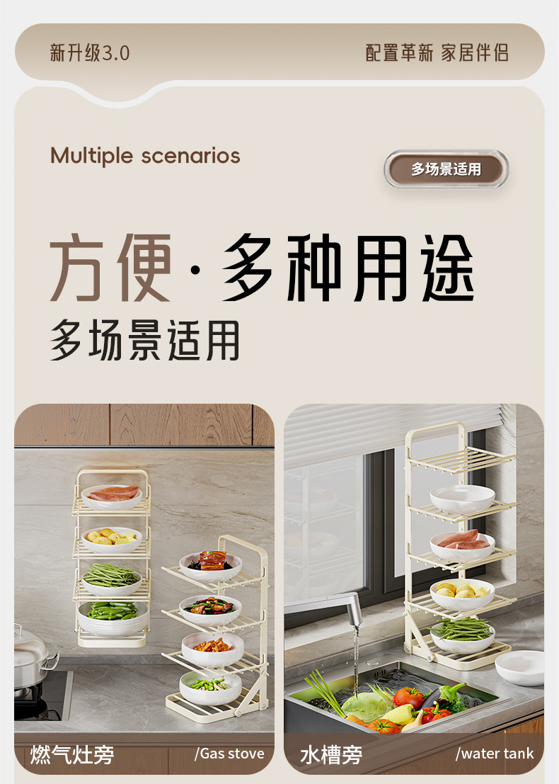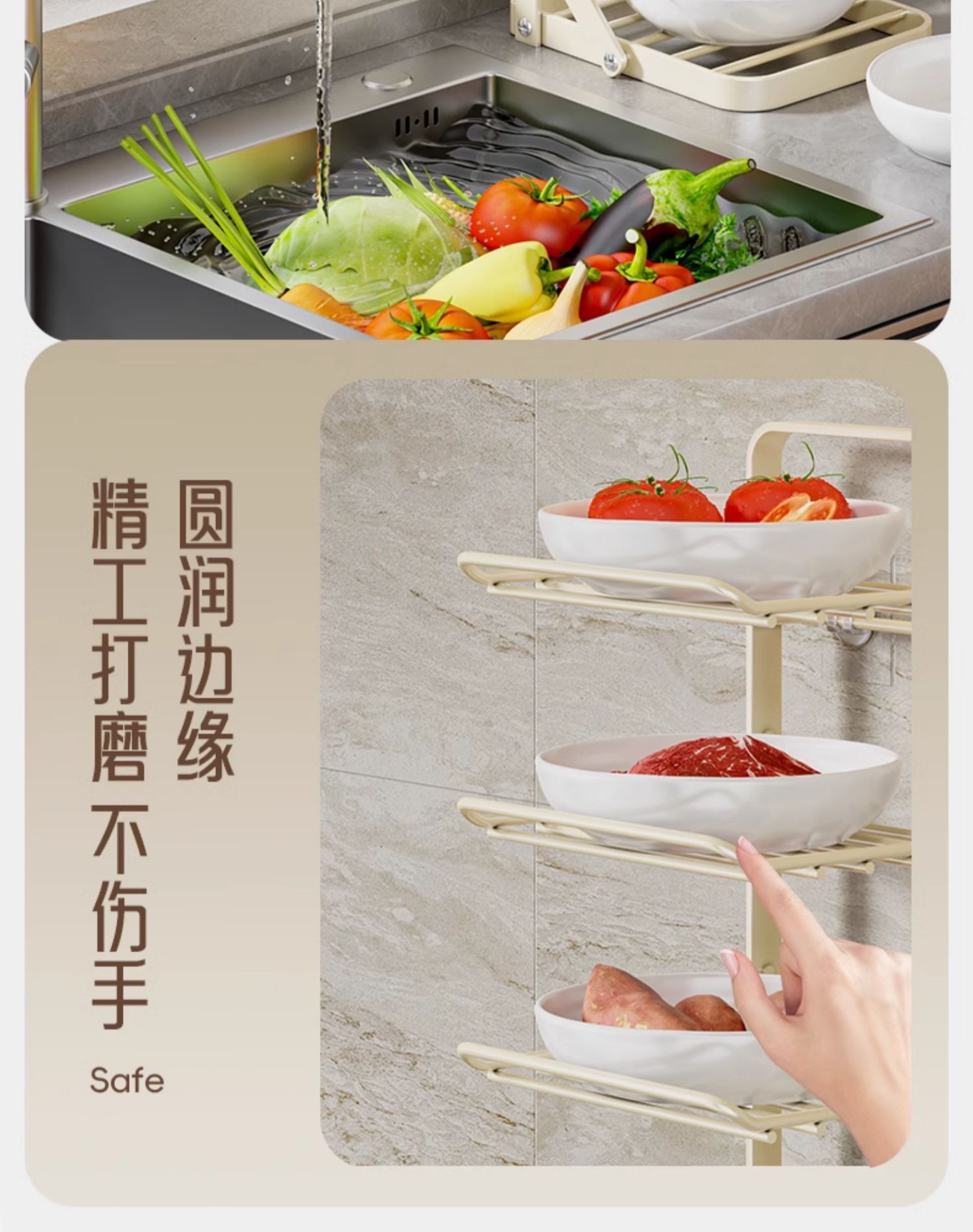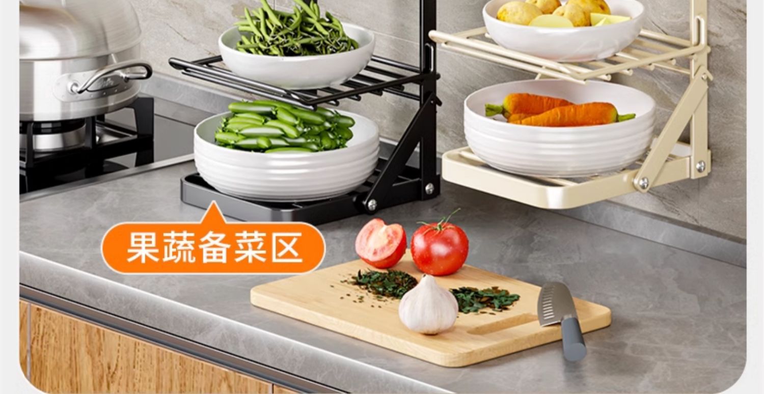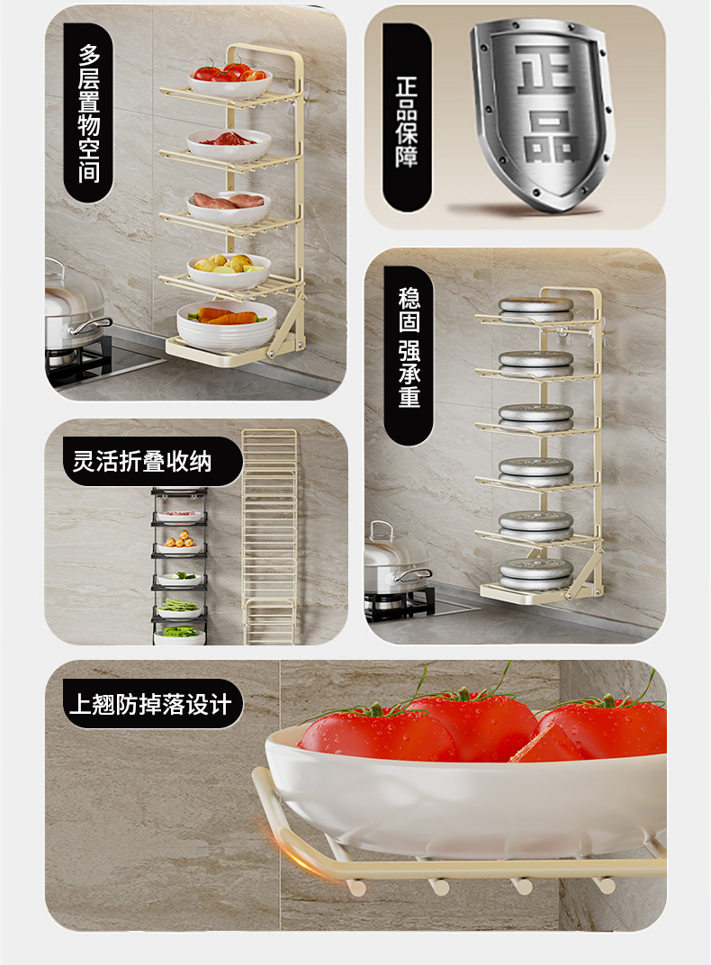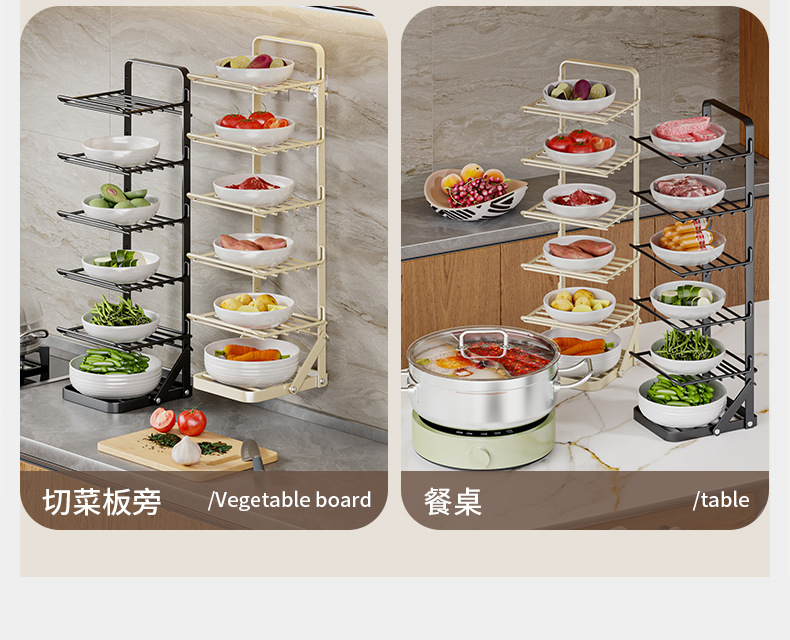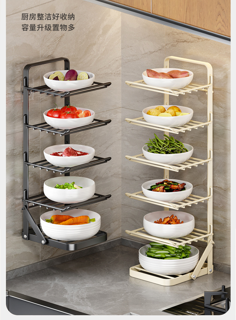 # 접는 접시 저장 랙 주방 접시 벽에 걸려있는 다층 요리 가정용 요리 다기능 요리 보관스토어 가기
