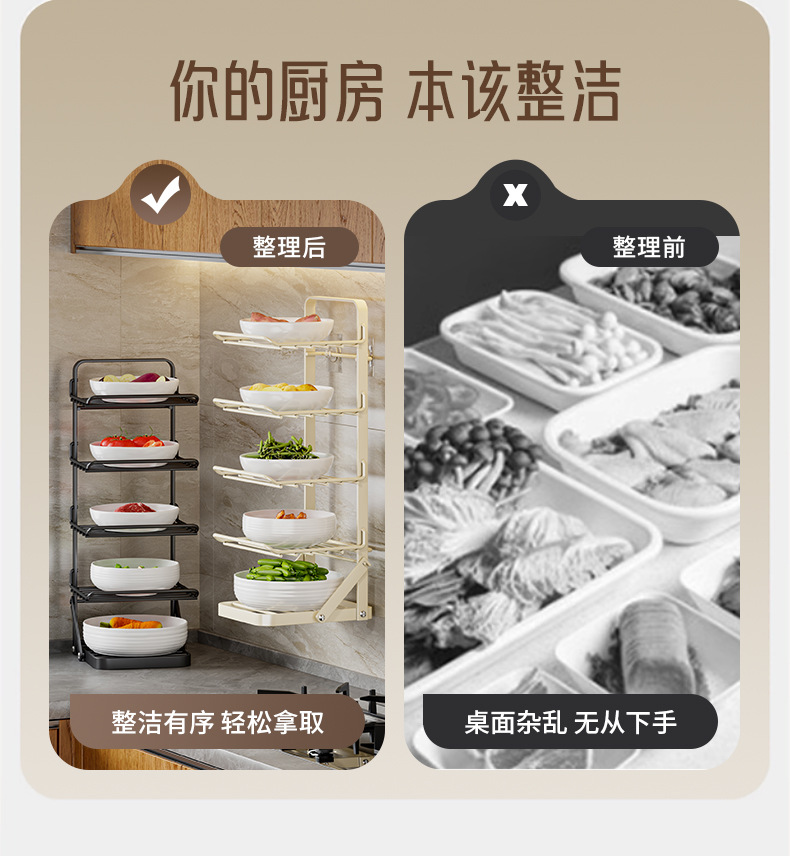 # 접는 접시 저장 랙 주방 접시 벽에 걸려있는 다층 요리 가정용 요리 다기능 요리 보관