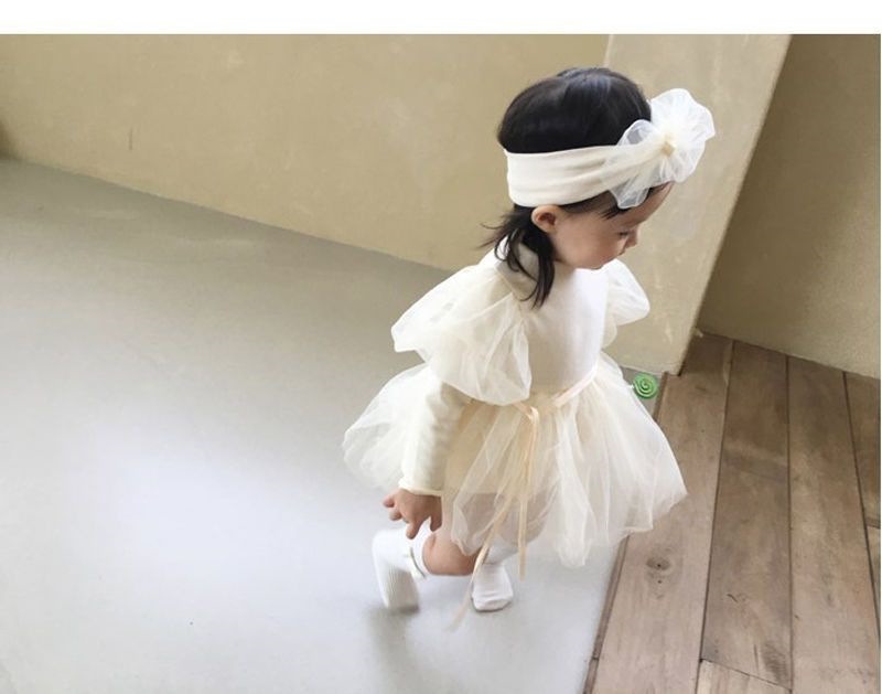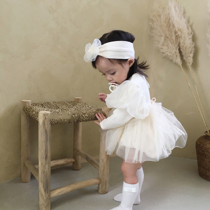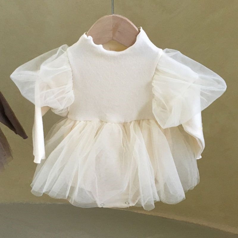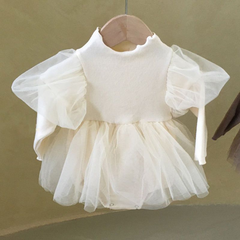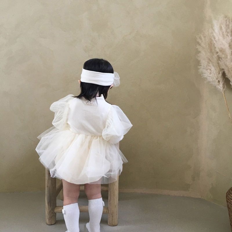 Ins 봄과 가을 한국 아기 소녀 퍼프 슬리브 퍼프 거즈 스커트 100 일 연회 공주 긴팔 크롤링 슈트스토어 가기