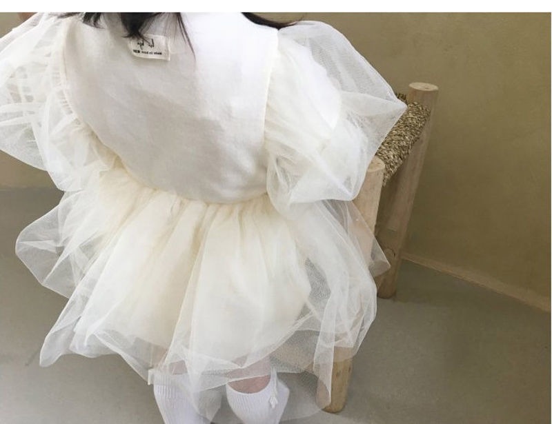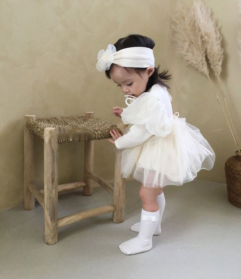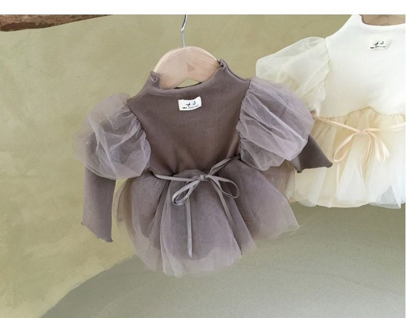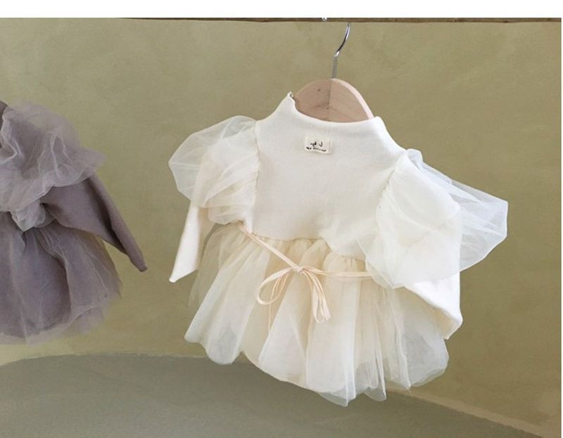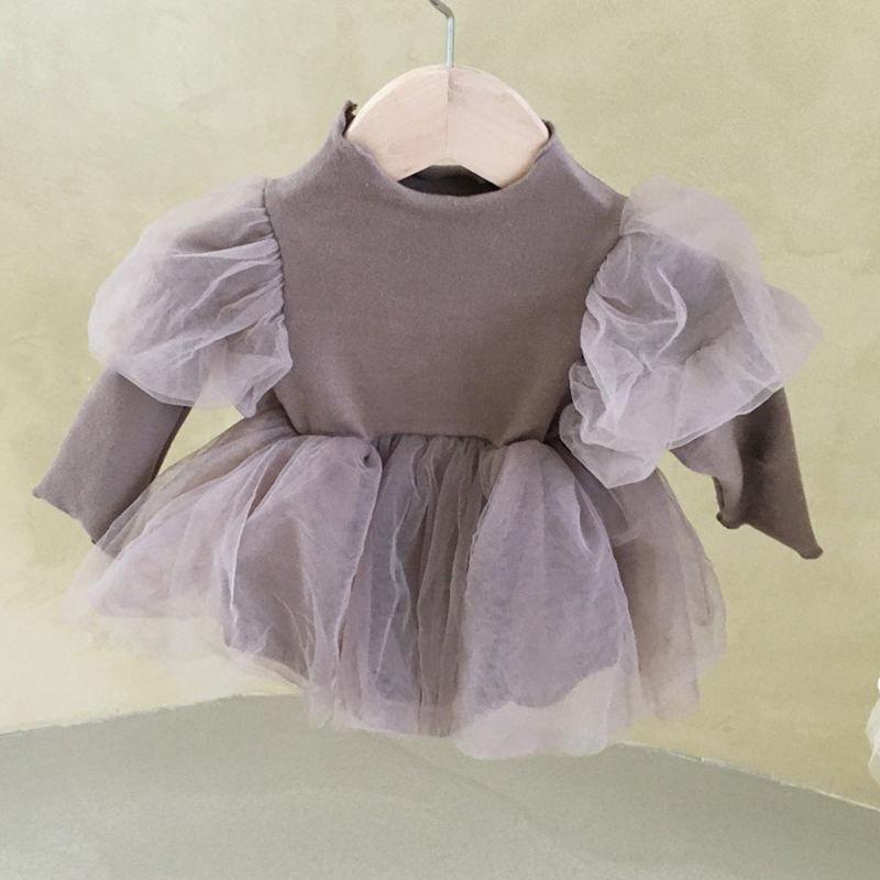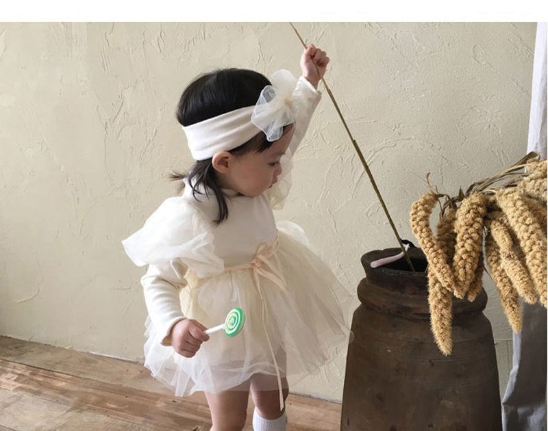 Ins 봄과 가을 한국 아기 소녀 퍼프 슬리브 퍼프 거즈 스커트 100 일 연회 공주 긴팔 크롤링 슈트스토어 가기