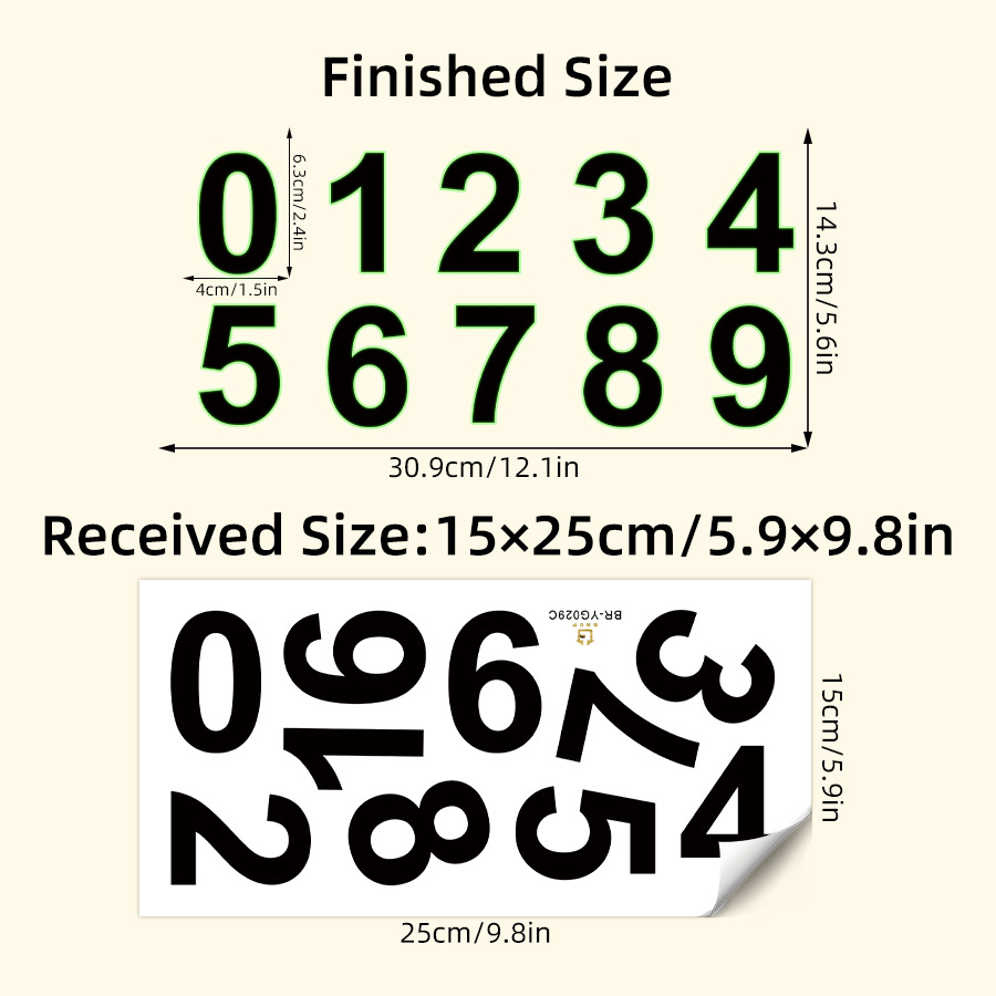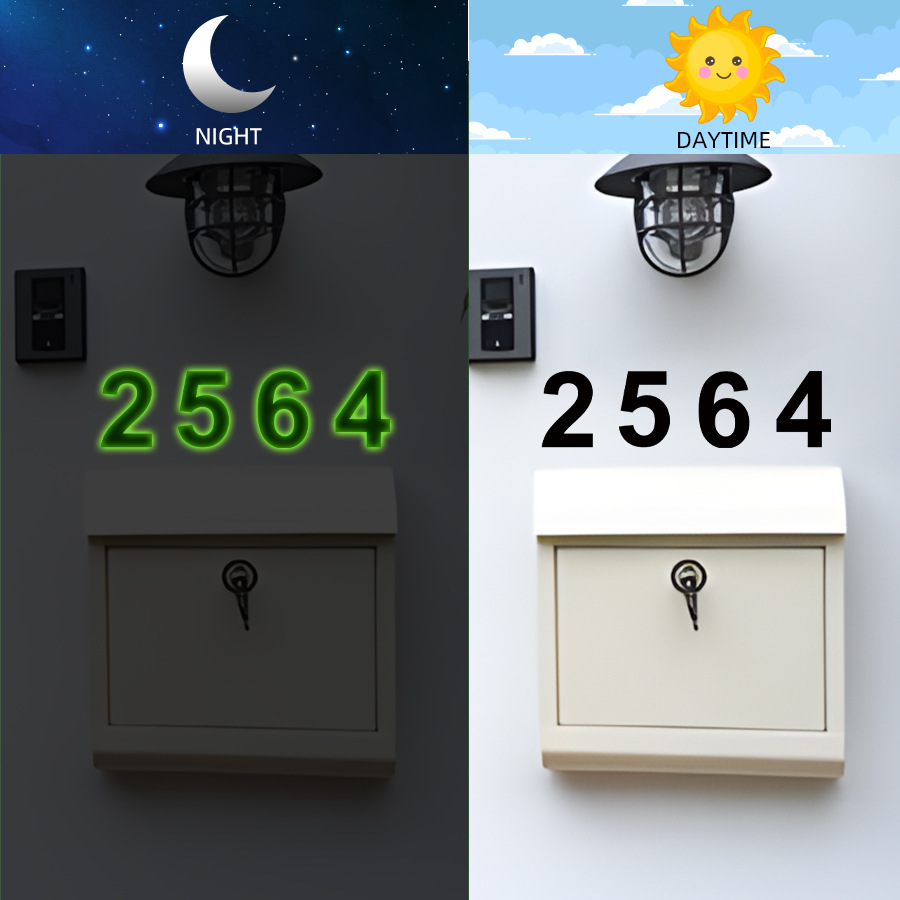 BR-YG029C 크리 에이 티브 빛나는 디지털 스티커 0 ~ 9 자체 접착 벽 스티커 DIY 방수 우편함 번호 장식 단어 스티커