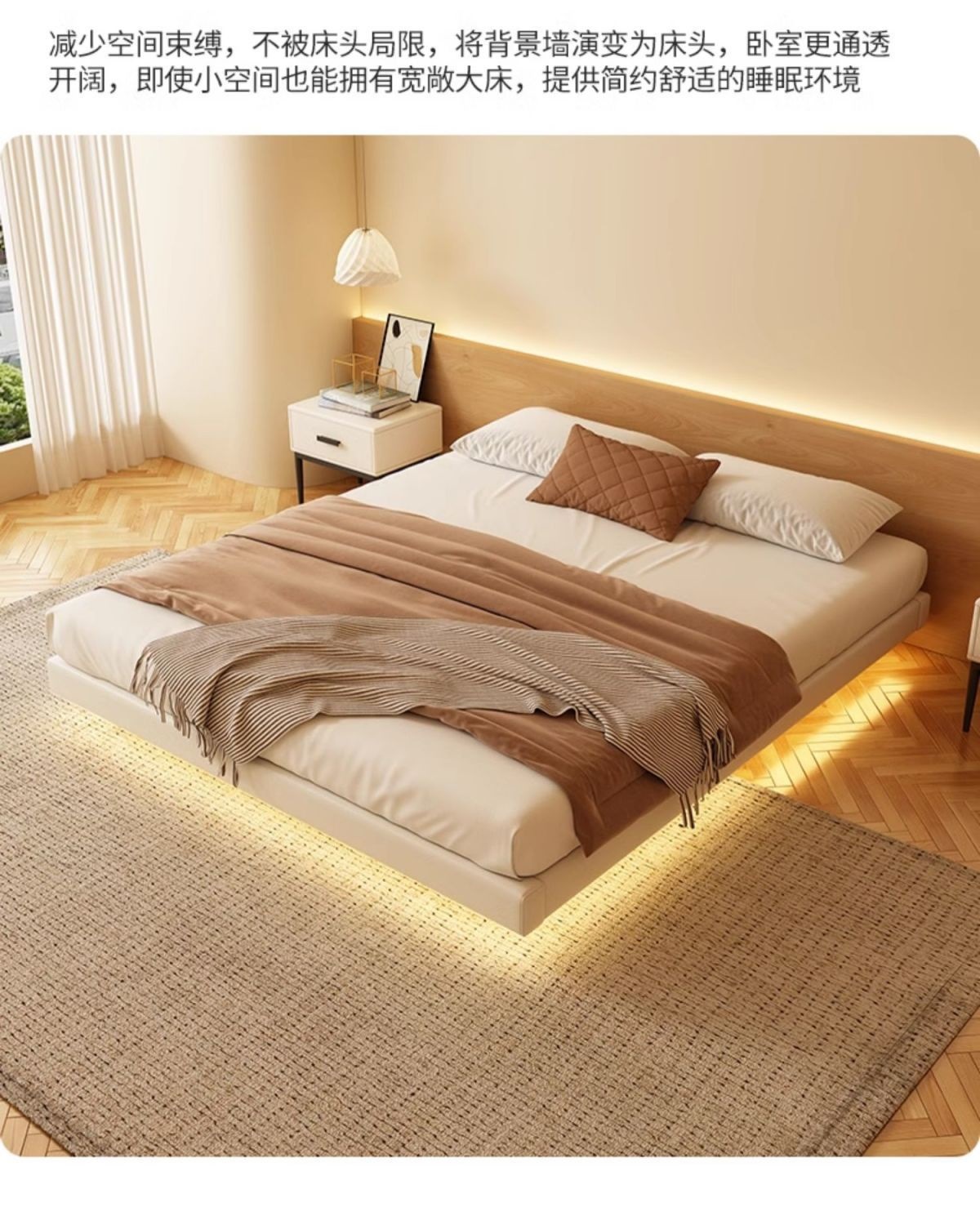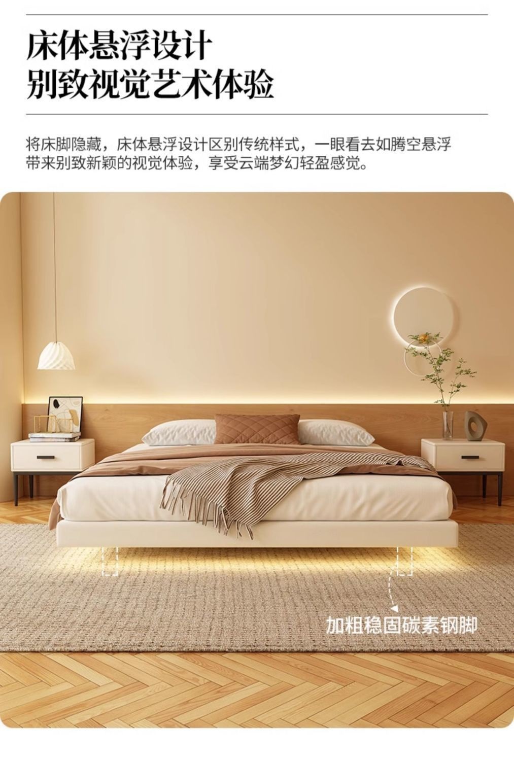 침대 옆 서스펜션 저장 현대 크림 간단한 작은 아파트 마스터 침실 등받이 더블 침대 이탈리아 가벼운 럭셔리스토어 가기