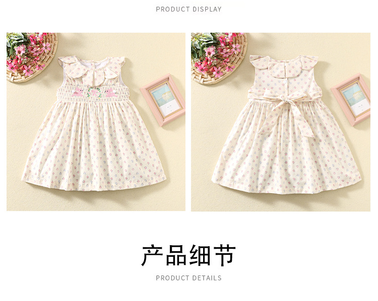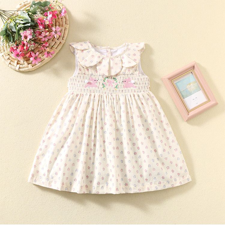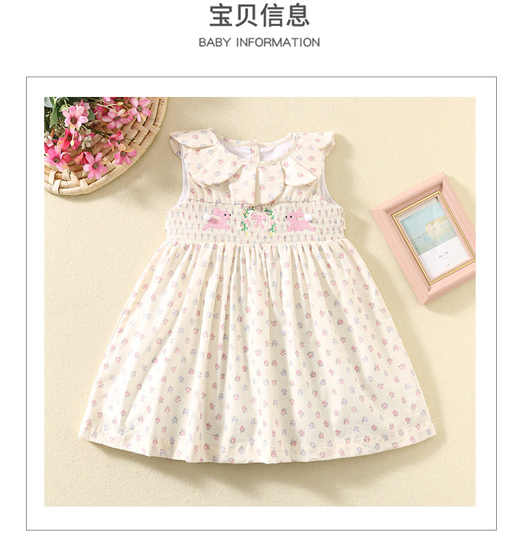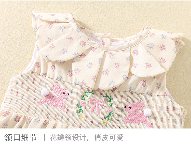 여름 소녀 스커트 한국 스타일 민소매 프린트 스커트 꽃잎 칼라 어린이 스커트 귀여운 만화 토끼 공주 스커트스토어 가기