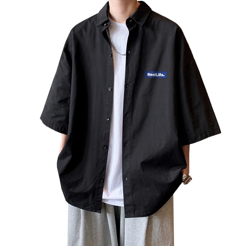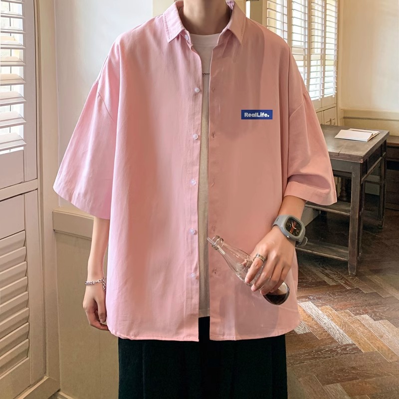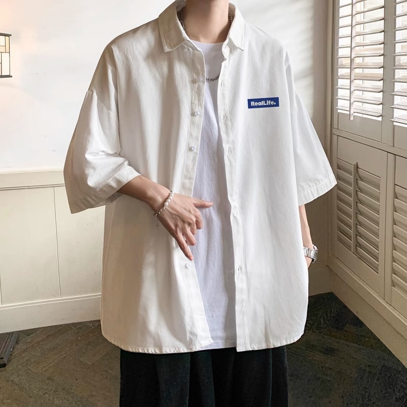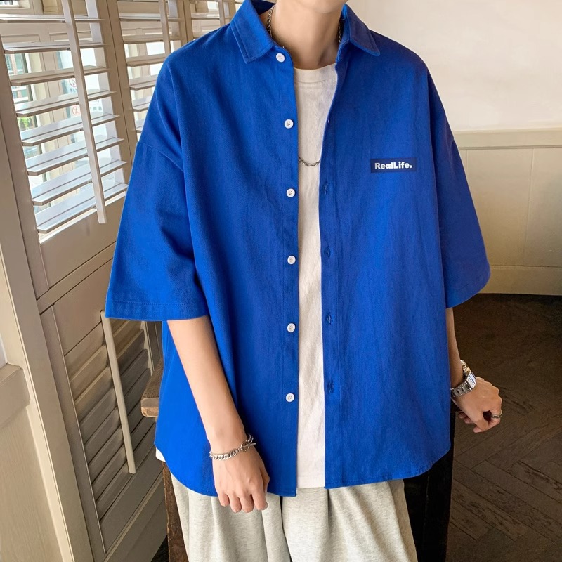 여름 얇은 스포츠 캐주얼 반팔 셔츠 남자 홍콩 스타일 일본 스타일 플러스 사이즈 반소매 셔츠 재킷 유행 브랜드스토어 가기