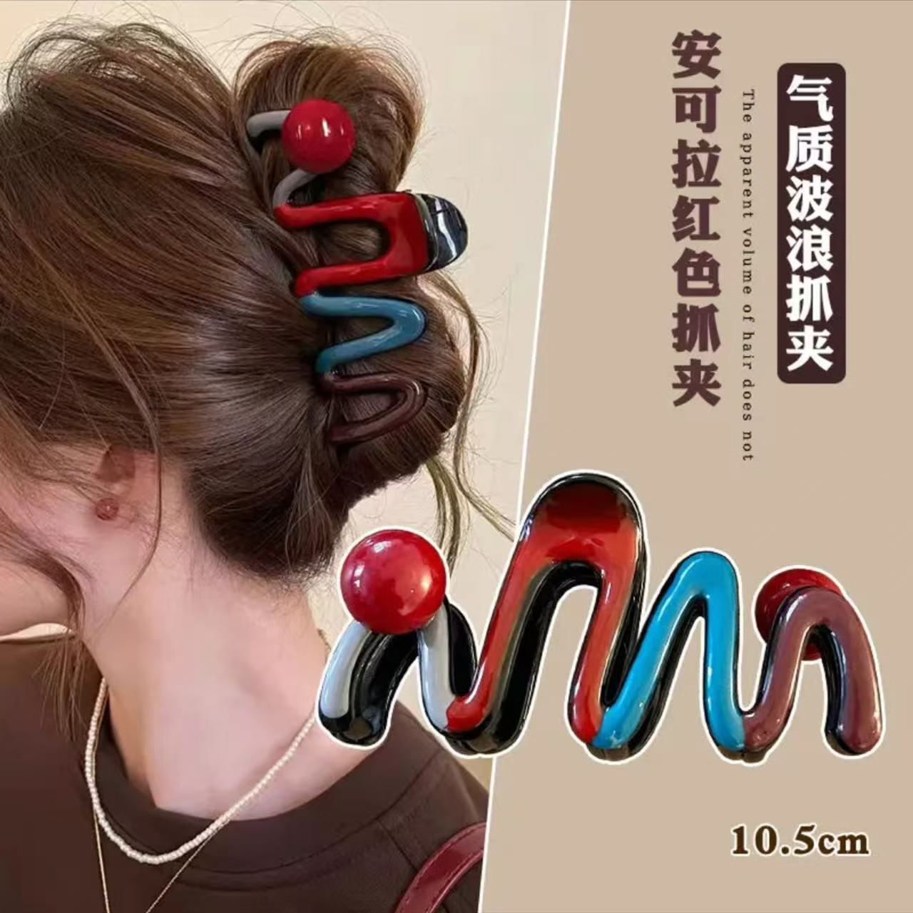 새로운 대비 컬러 웨이브 큰 잡아 클립 라운드 구슬 머리핀 머리 상어 클립 우아한 헤어핀 헤드웨어 패션 머리 뒤로스토어 가기