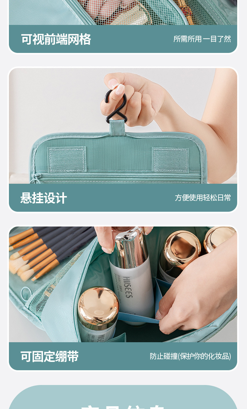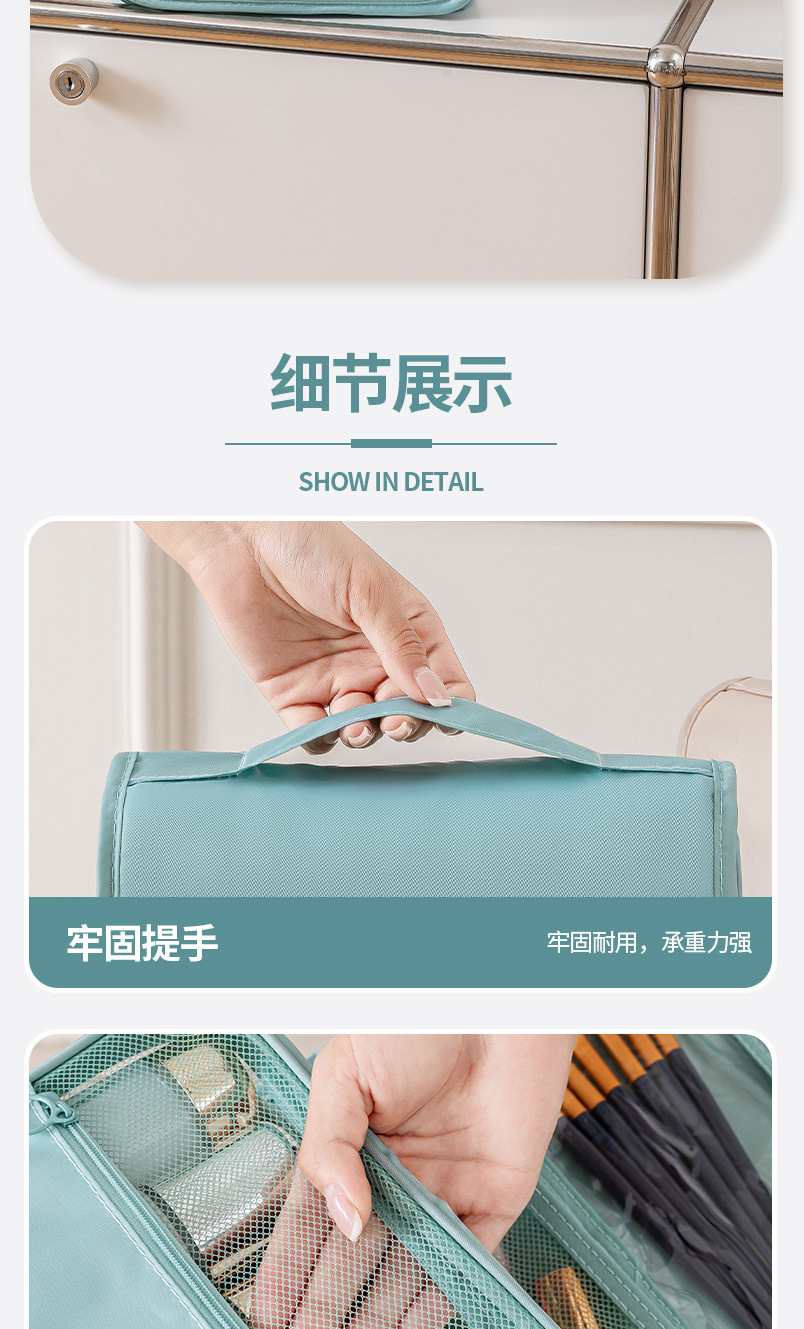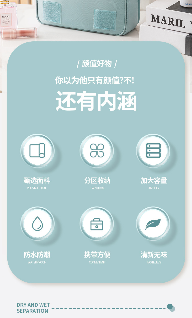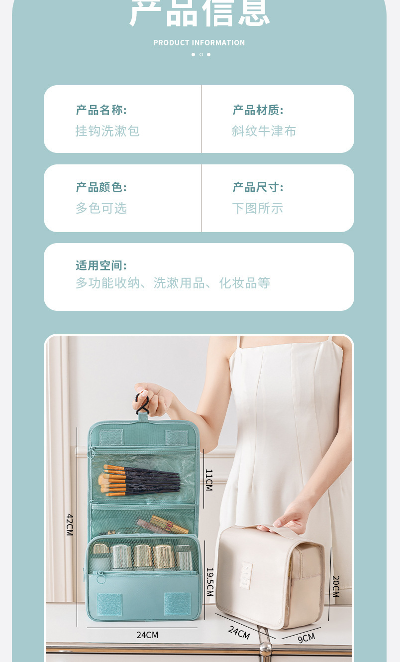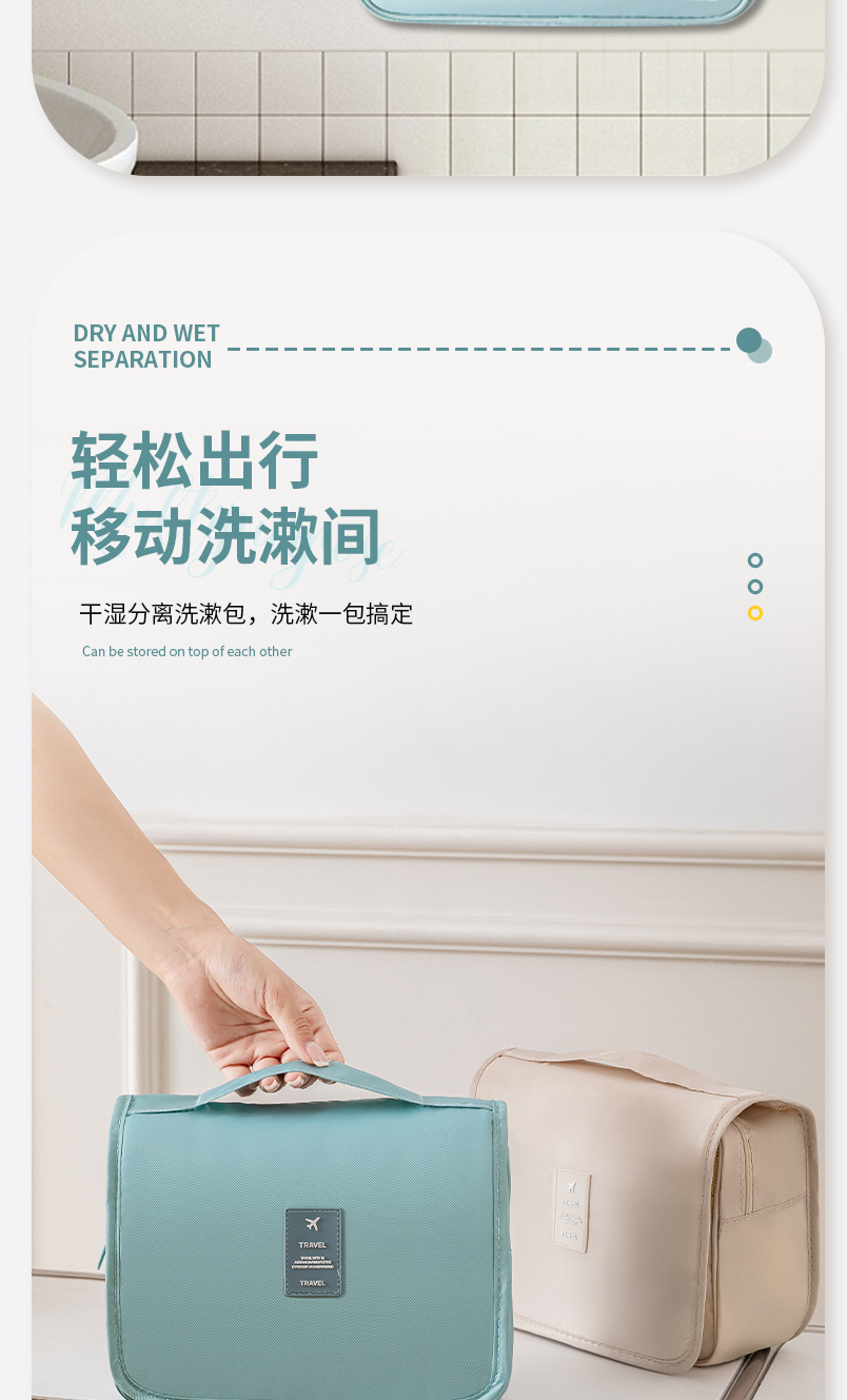 능직 한국식 여행용 세면도구 가방, 화장품 가방, 후크 가방, 다기능, 다용도, 대용량, 건식 및 습식 분리 보관 가방스토어 가기