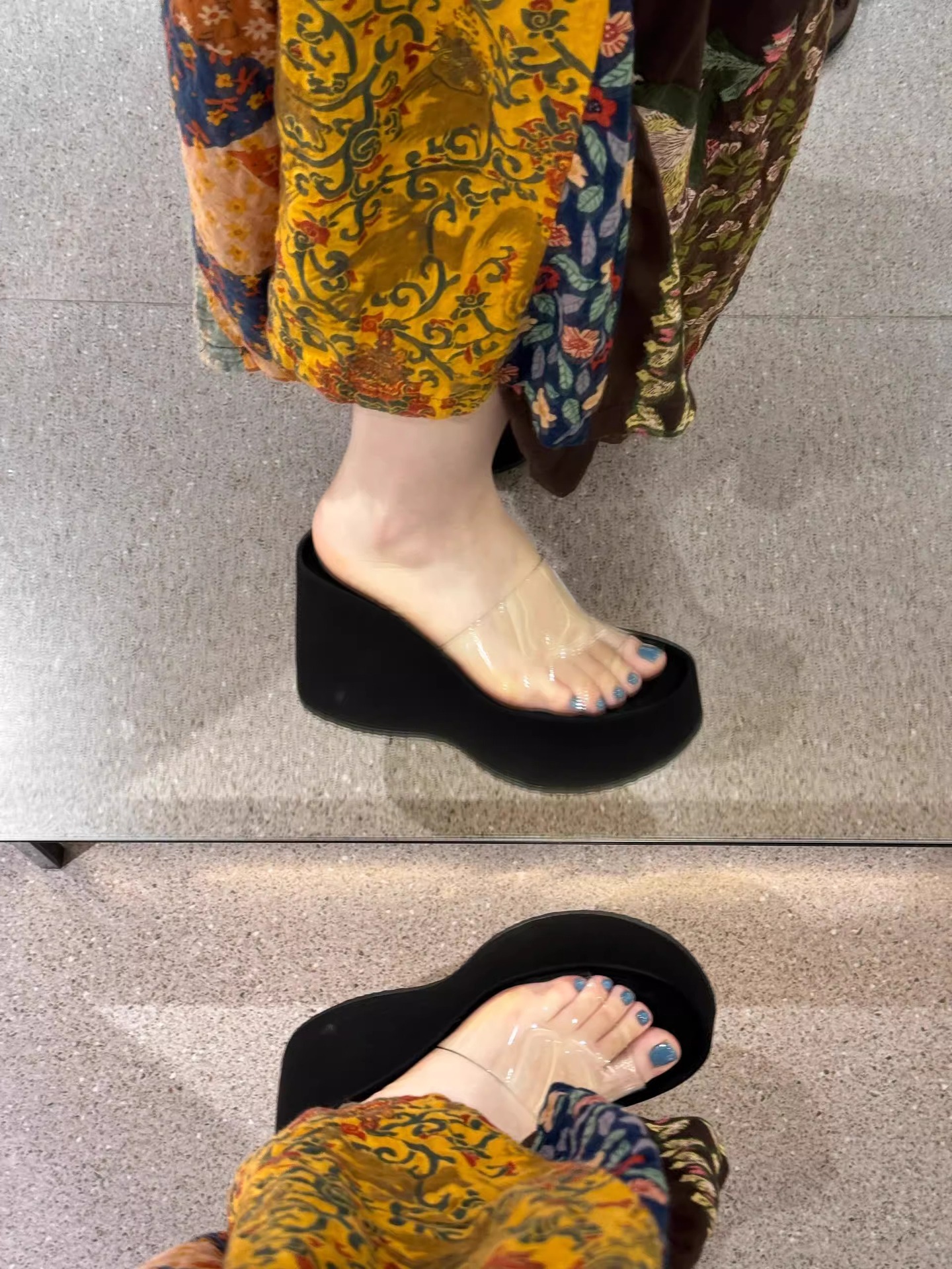 양가죽 버전 ~ 여성용 천연가죽 웨지 투명 슬리퍼, 키가 작은 분들을 위한 두꺼운 밑창 반슬리퍼, 하이힐 샌들스토어 가기