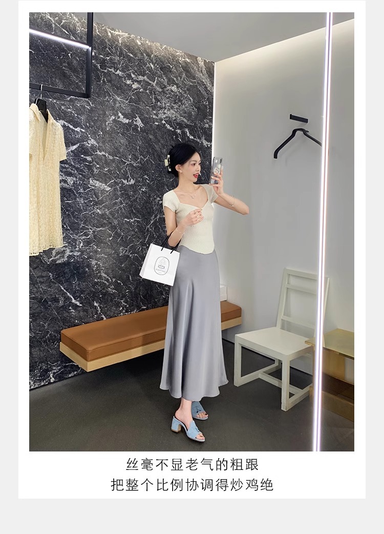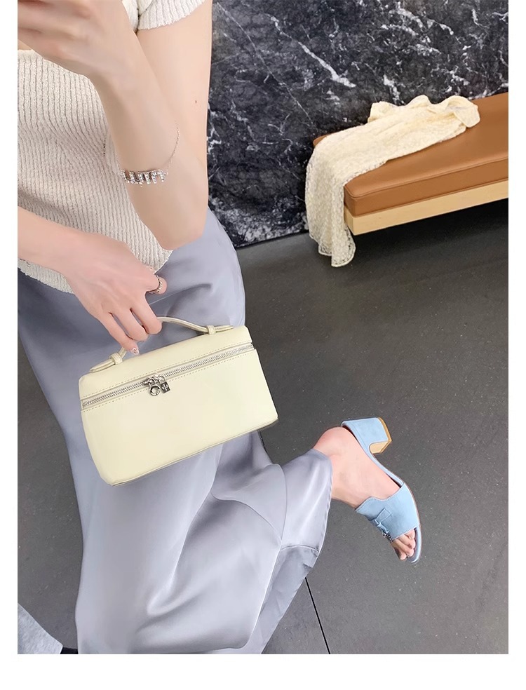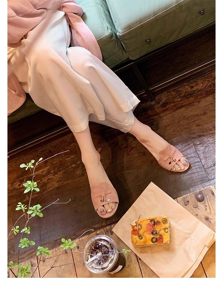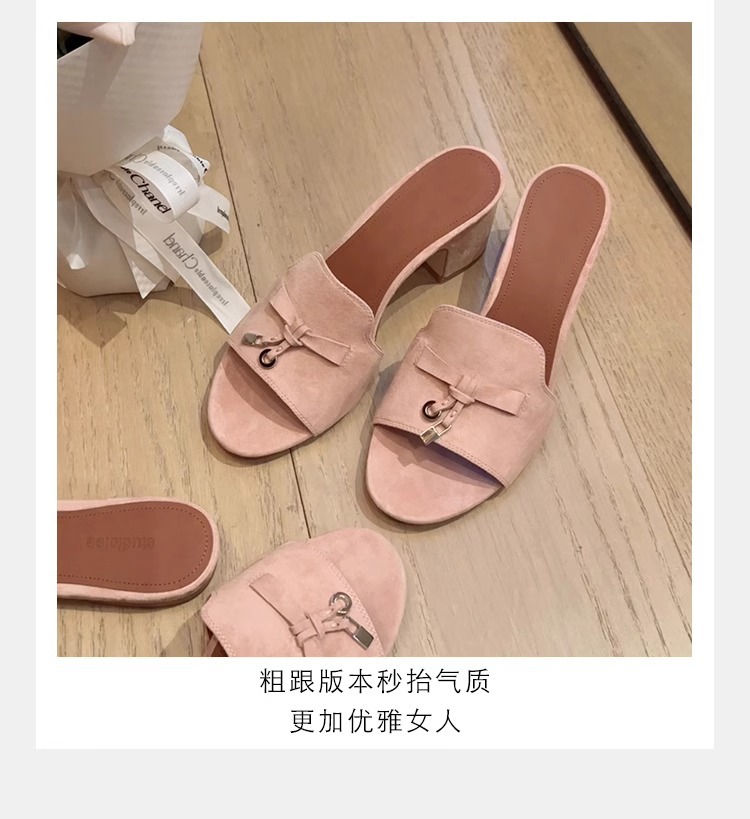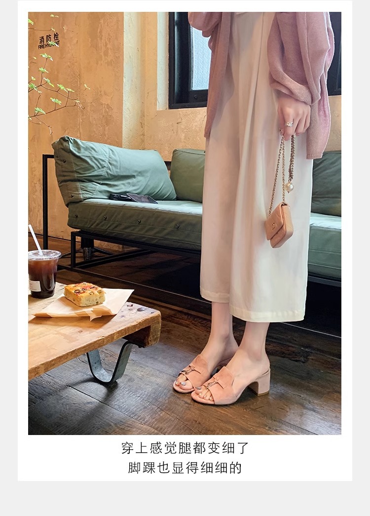 양가죽 버전 ~ 작은 금 버클 정품 가죽 하이힐 슬리퍼 여성용 프랑스 스타일 작은 샌들 두꺼운 힐 미드 힐 슬리퍼 하프 홉스토어 가기