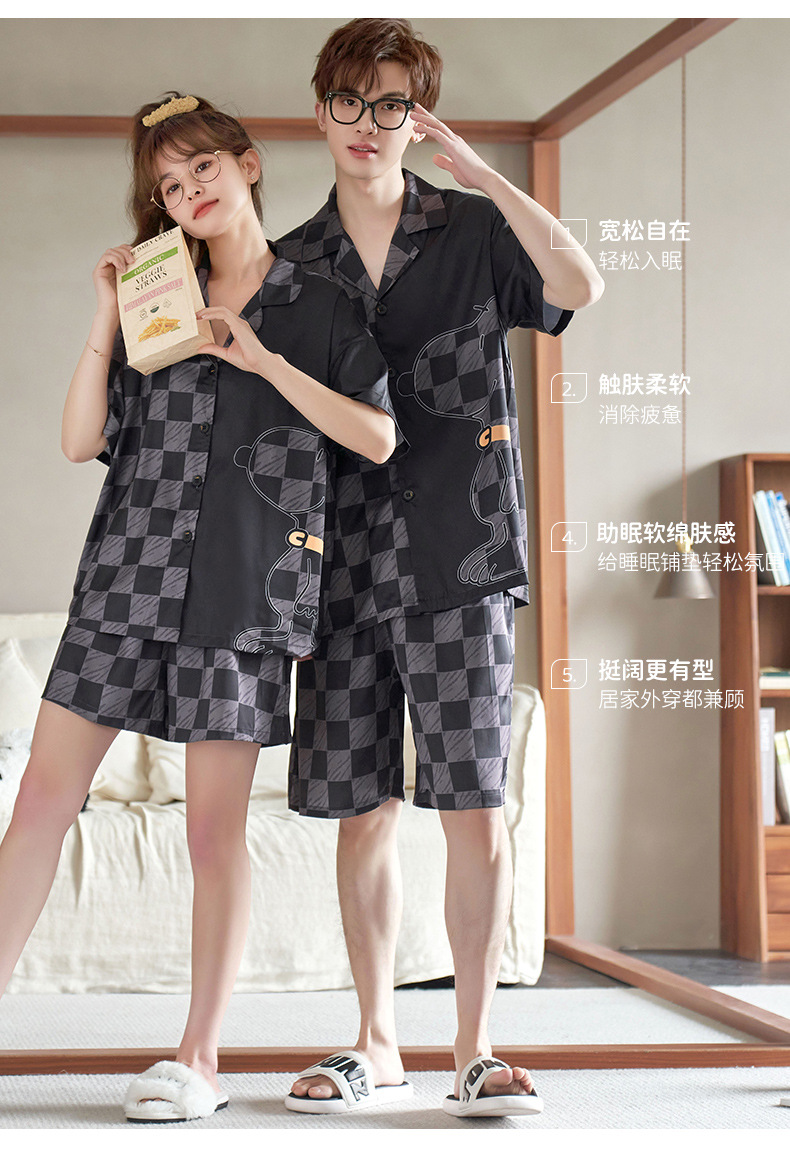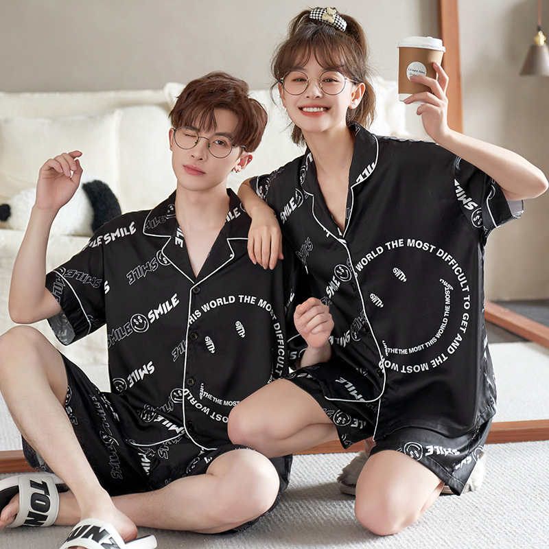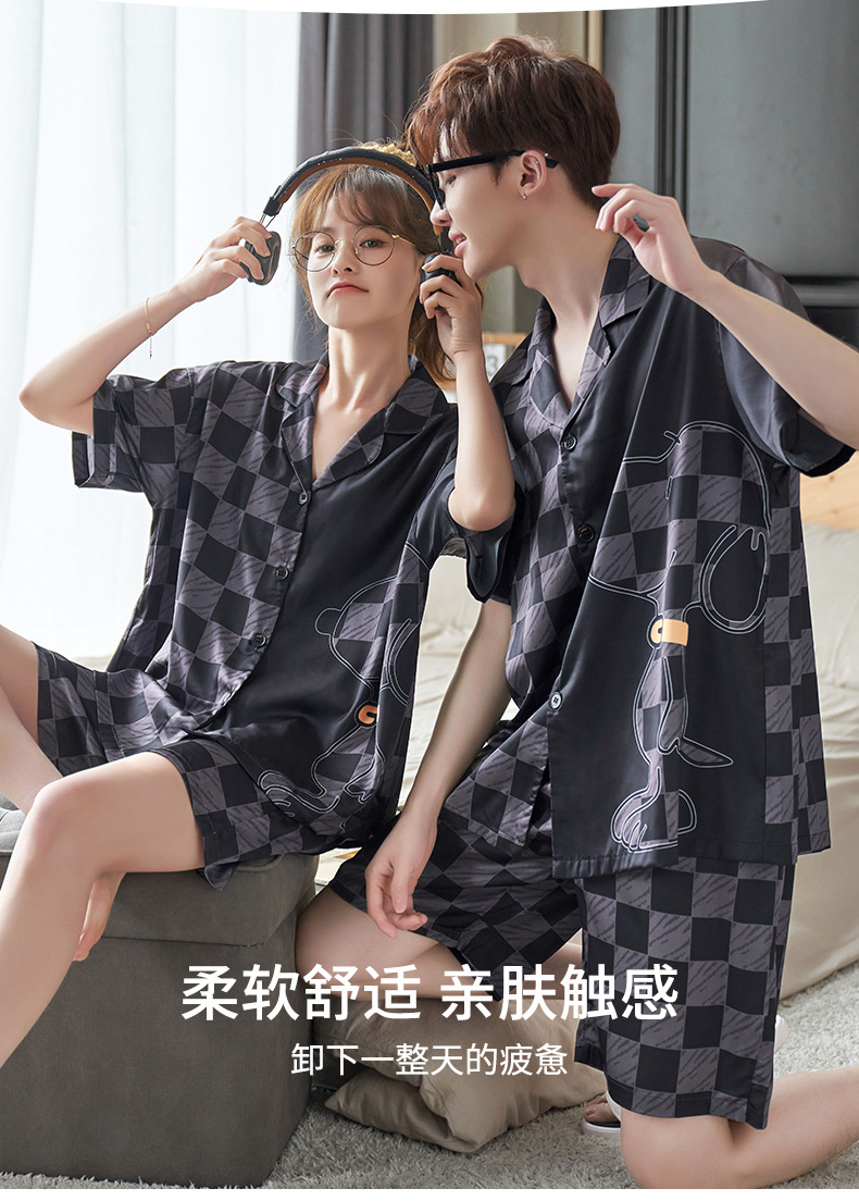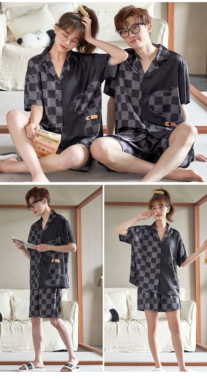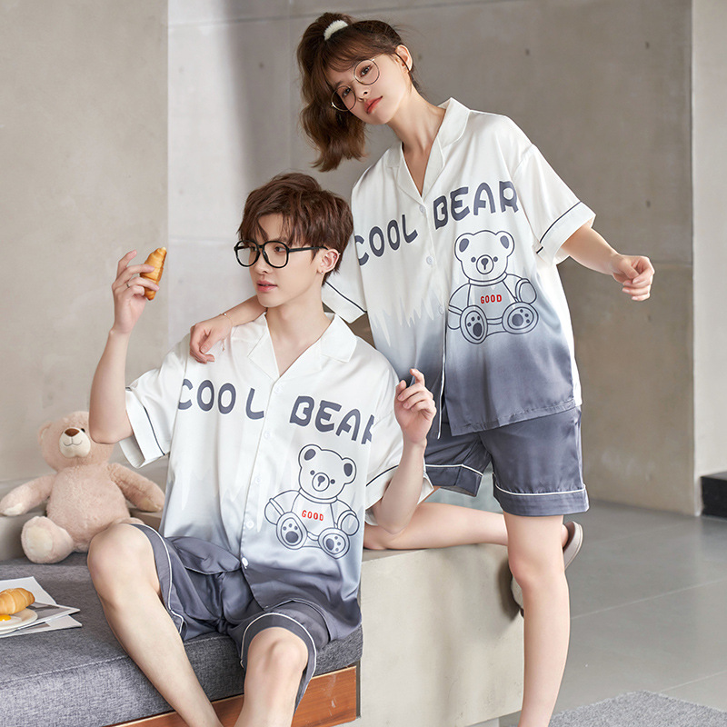 커플 잠옷 여름 반팔 아이스 실크 남자의 얇은 만화 플러스 사이즈 달콤한 귀여운 여자의 홈 의류 세트