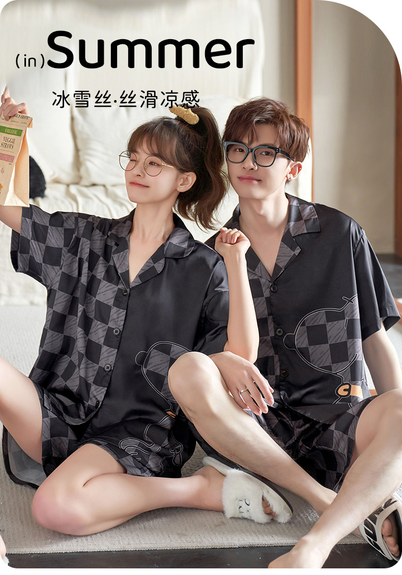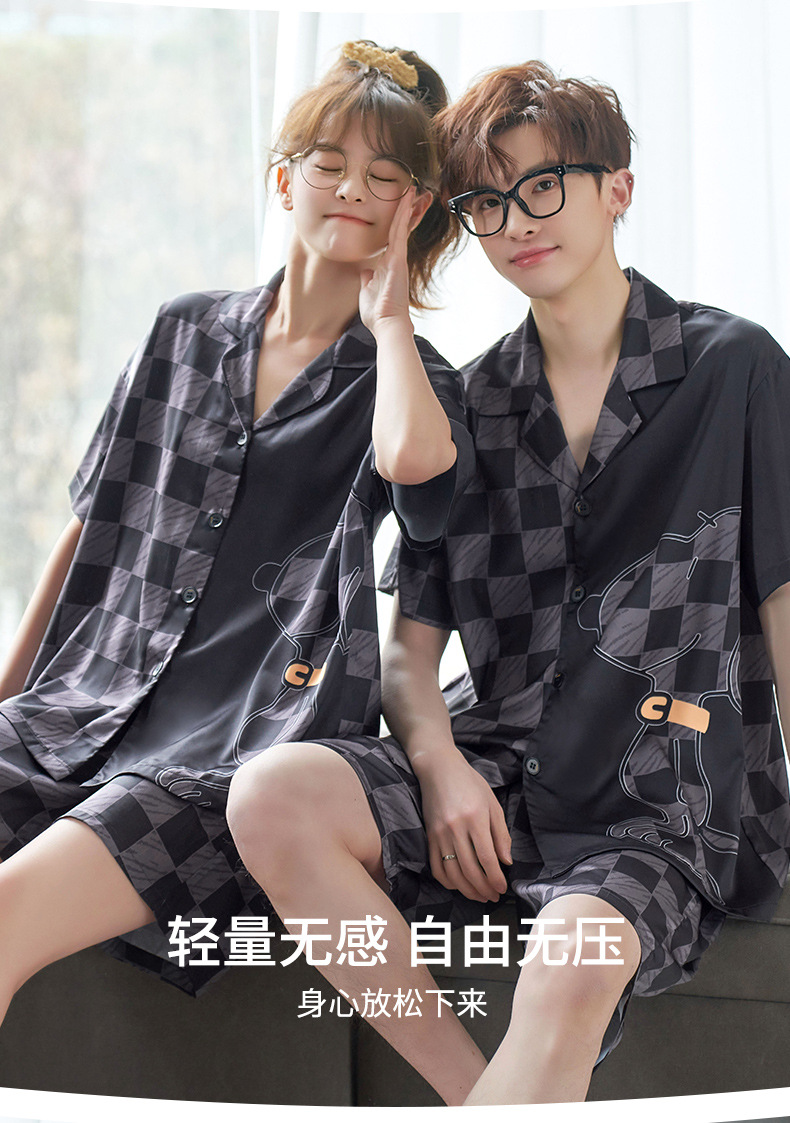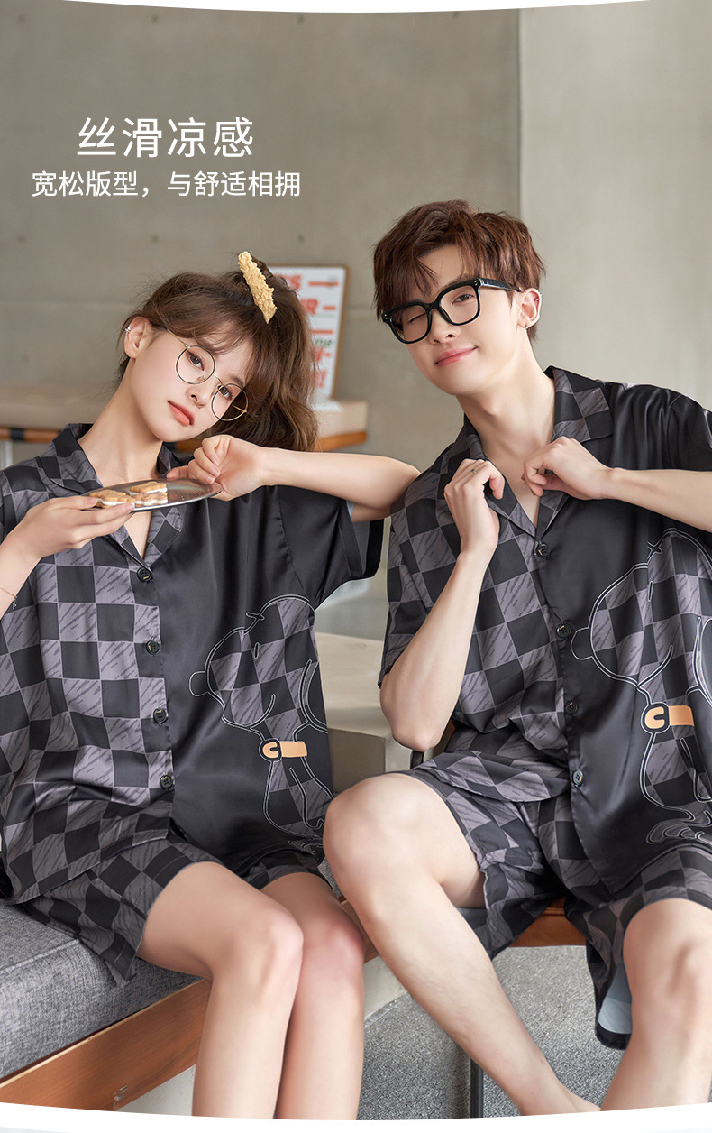 커플 잠옷 여름 반팔 아이스 실크 남자의 얇은 만화 플러스 사이즈 달콤한 귀여운 여자의 홈 의류 세트스토어 가기