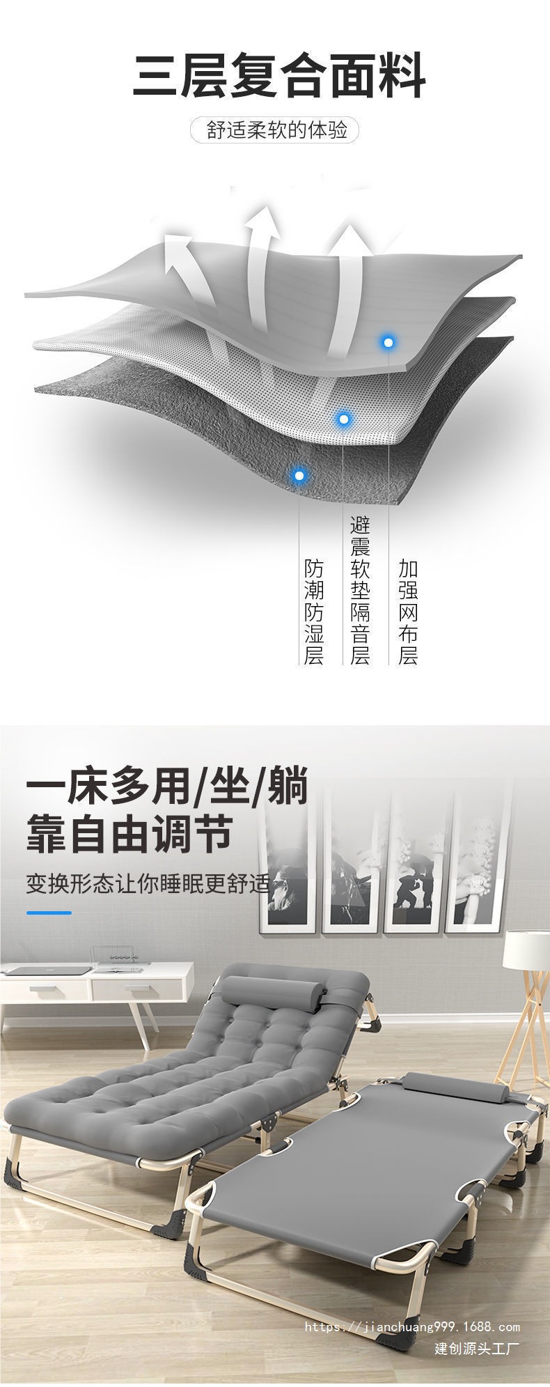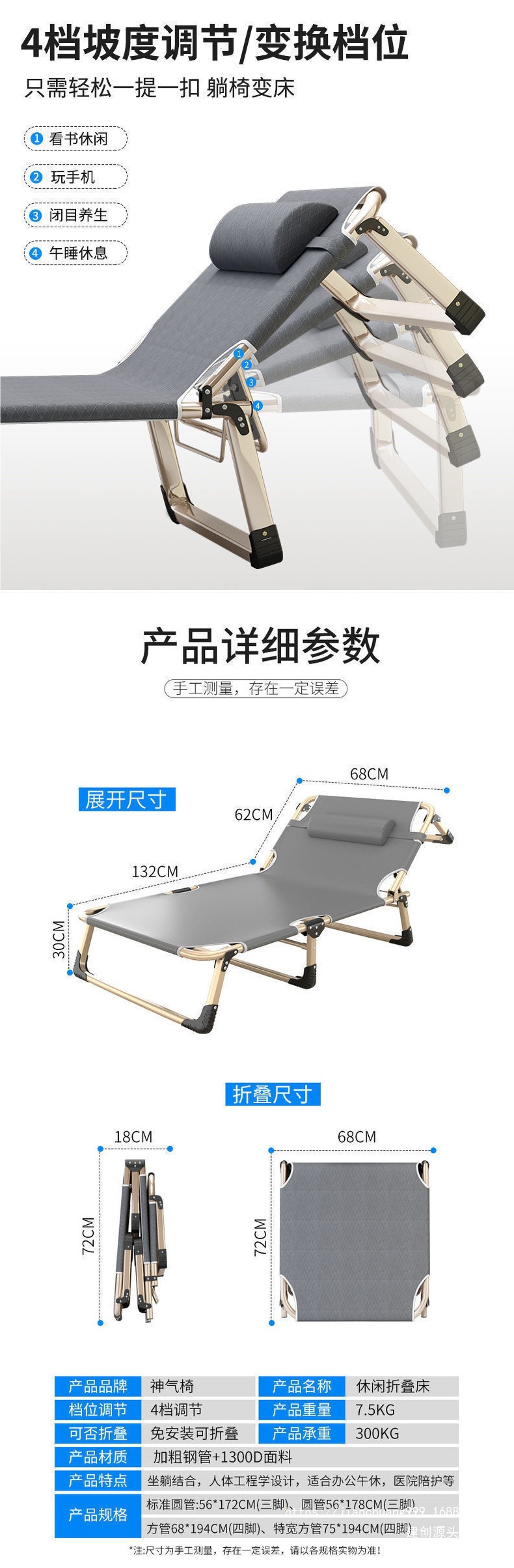 접이식 침대 싱글 침대 낮잠 사무실 Recliner 가정용 간단한 점심 식사 침대 휴대용 다기능 육군 침대스토어 가기