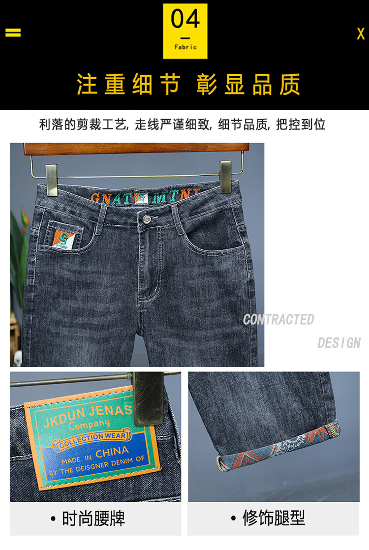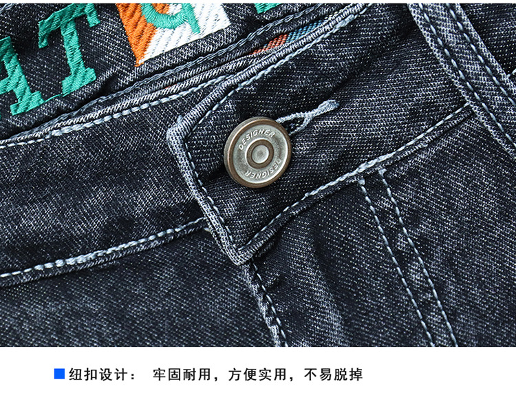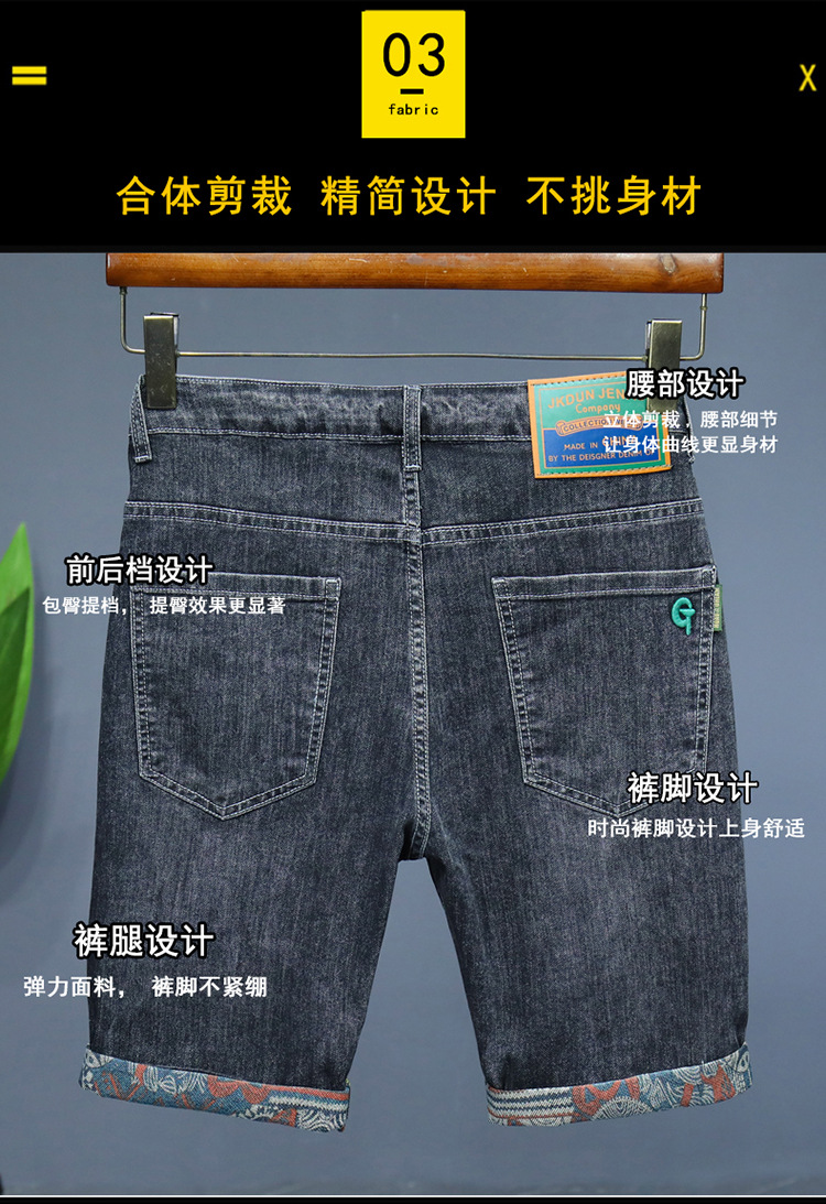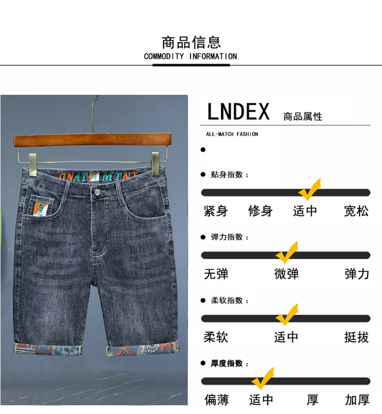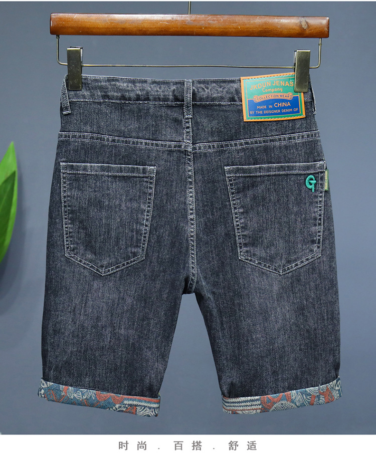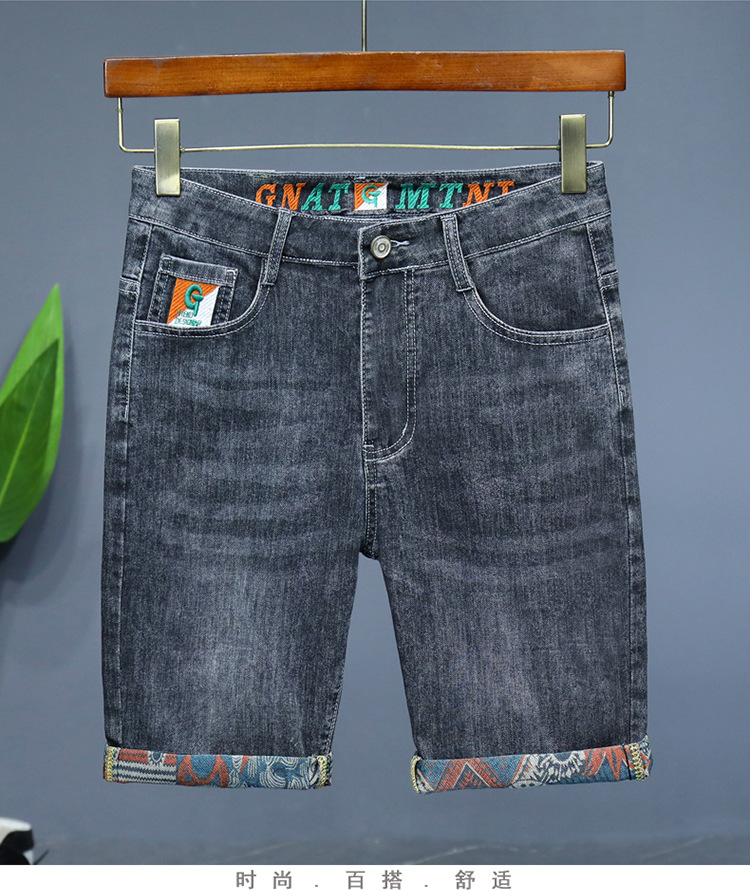 【大量现货】五分裤男士牛仔短裤男款弹力宽松直筒裤刺绣印花中裤