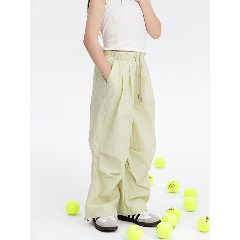 소녀 미국 스포츠 커버 바지 2025 여름 새로운 어린이 얇은 직선 다리 캐주얼 와이드 다리 바지