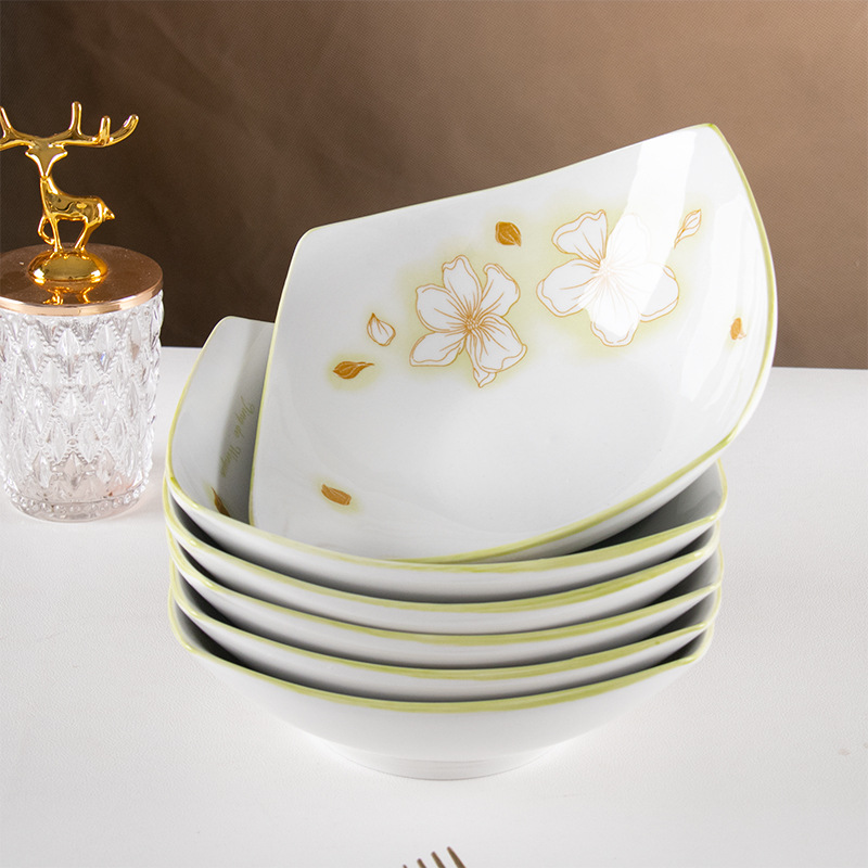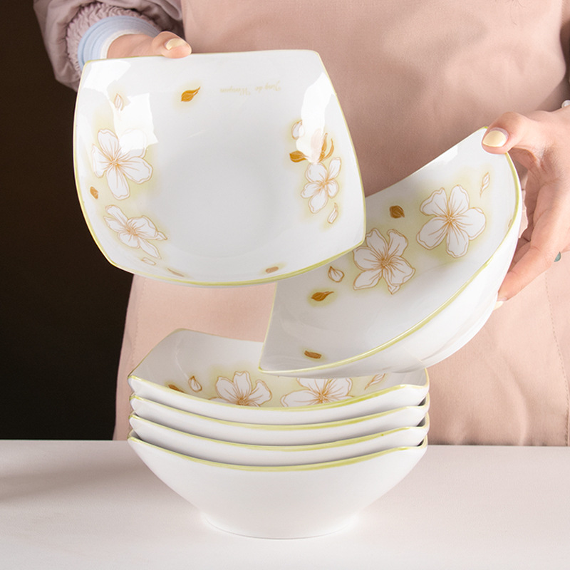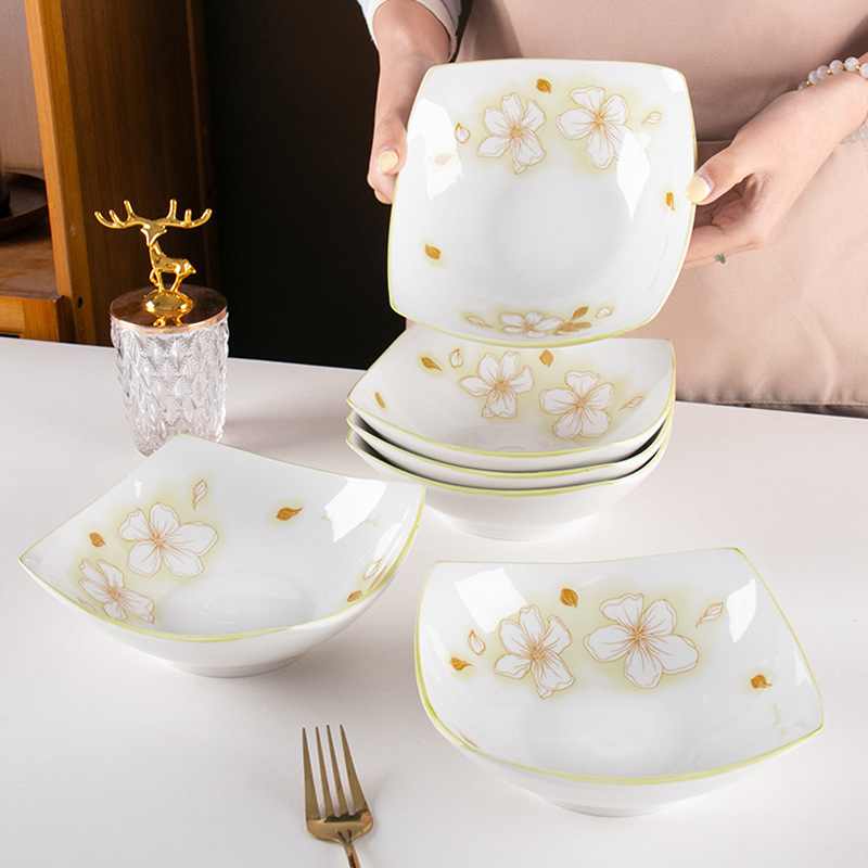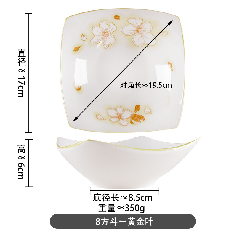 8 인치 Ruyi Square Bowl 6 골드 리프 언더 유약 컬러 전자 레인지 가정용 인터넷 레드 일본 크리 에이 티브 요리