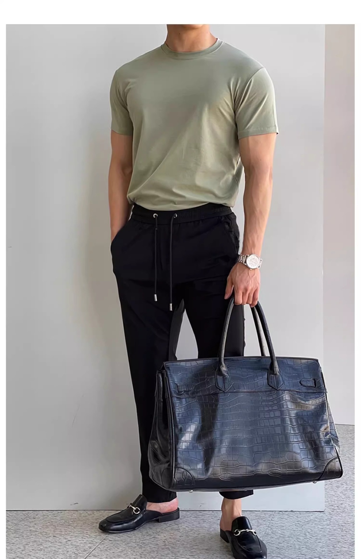 영국 유피 남성 여름 티셔츠 슬림 핏 반팔 근육 세트 내복 운동복 해외 무역 국경 도매