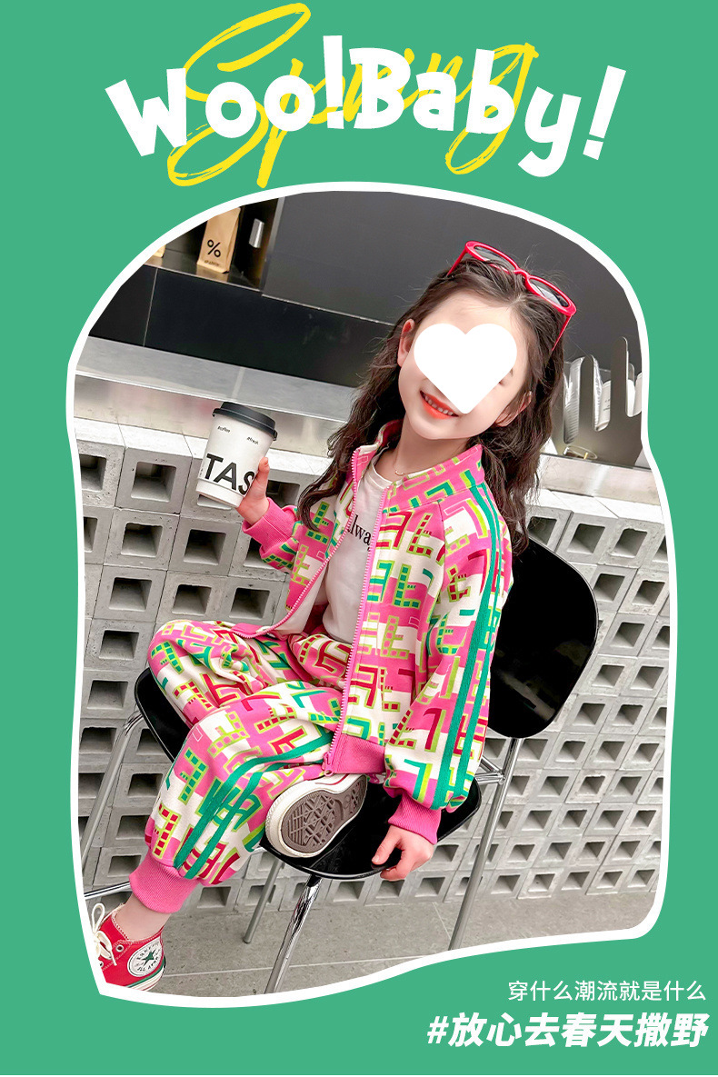 여자 봄, 가을 정장 2024 새로운 한국어 스타일 어린이 가을 운동복 여자 서양식 인터넷 연예인 캐주얼 투피스 세트