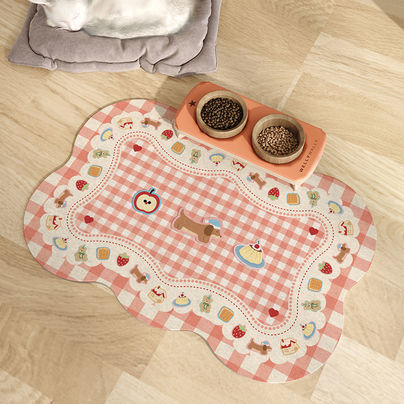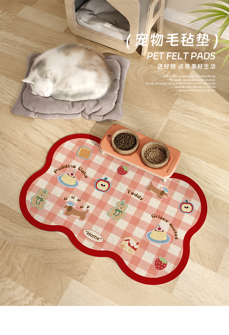 • 딸기 푸딩 파라다이스 애완동물 펠트 매트 - 작은 파도 모양
