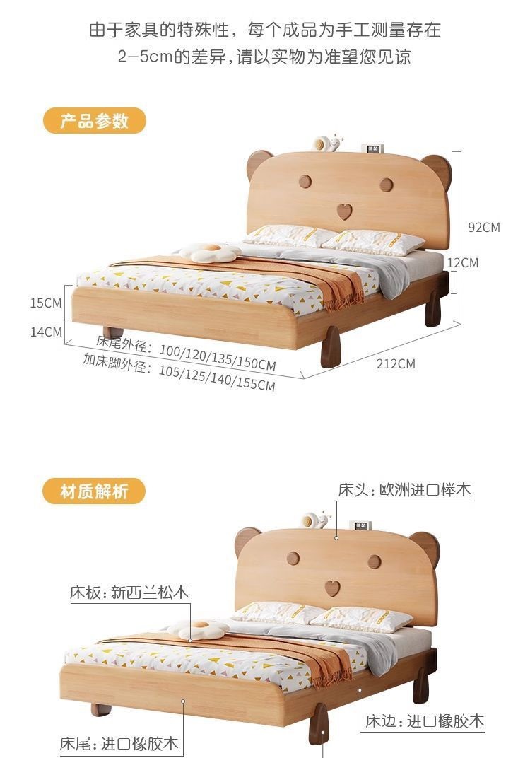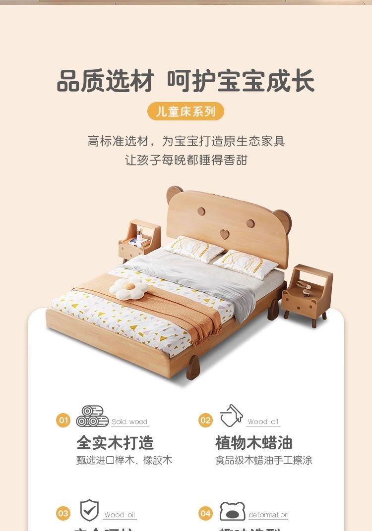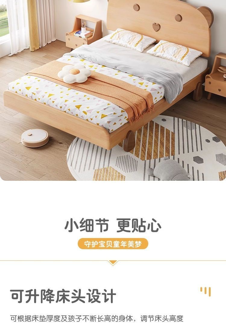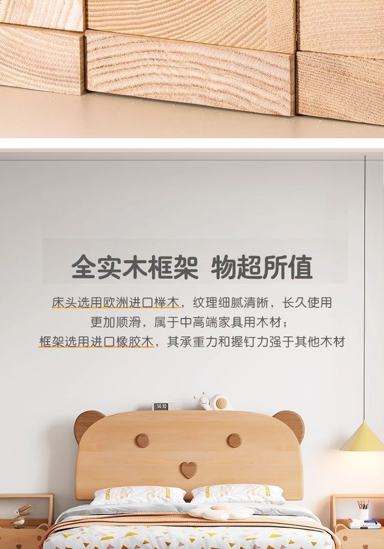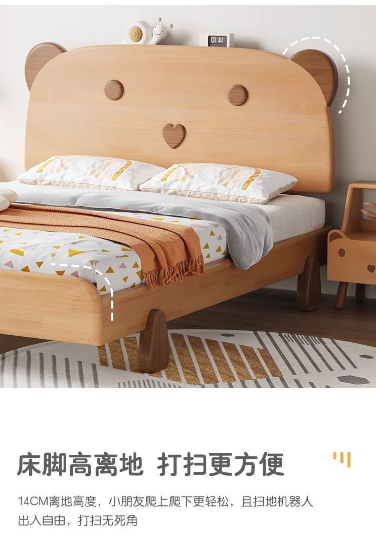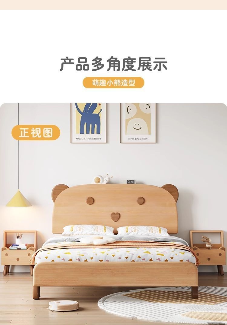 북유럽 곰 어린이 침대 1.5m 가정용 너도밤 나무 단단한 나무 어린이 침대 현대 미니멀리스트 침대 침실 1m 싱글 침대스토어 가기