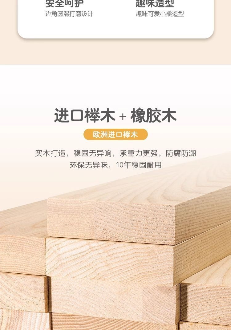 • 너도밤나무 곰 침대 + 침대 옆 탁자 1개 + A등급 진드기 방지 코코넛 야자 매트