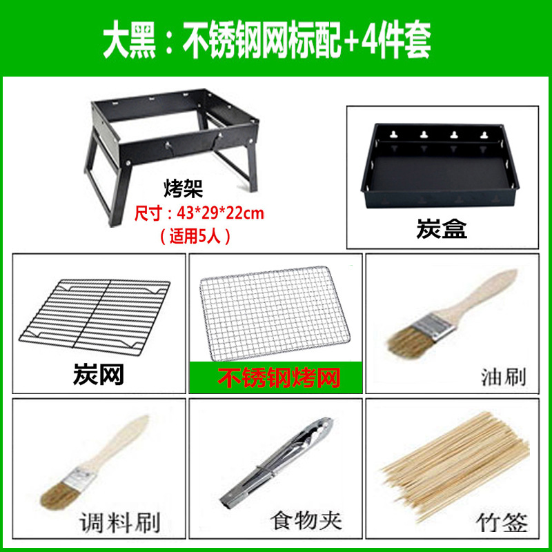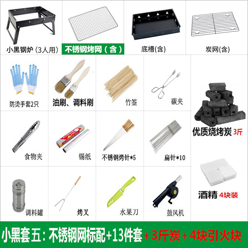 • 작은 검정색 세트 5: 표준 사각형 스테인레스 스틸 메쉬 + 13개 + 숯 1.5kg개 + 점화 블록