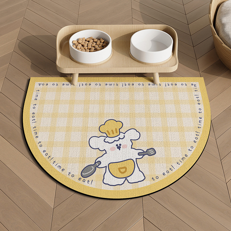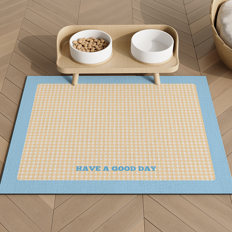 • 귀여운 노란색 격자 - 규조토 진흙 애완동물 플레이스매트