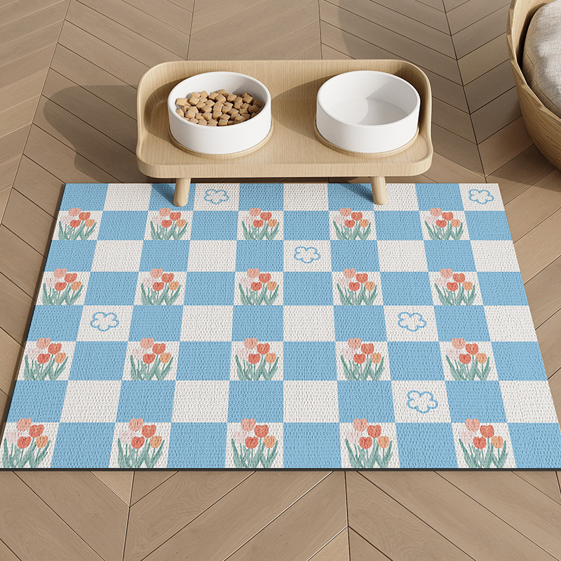 • 체커보드 꽃 - 규조토 진흙 애완동물 플레이스매트