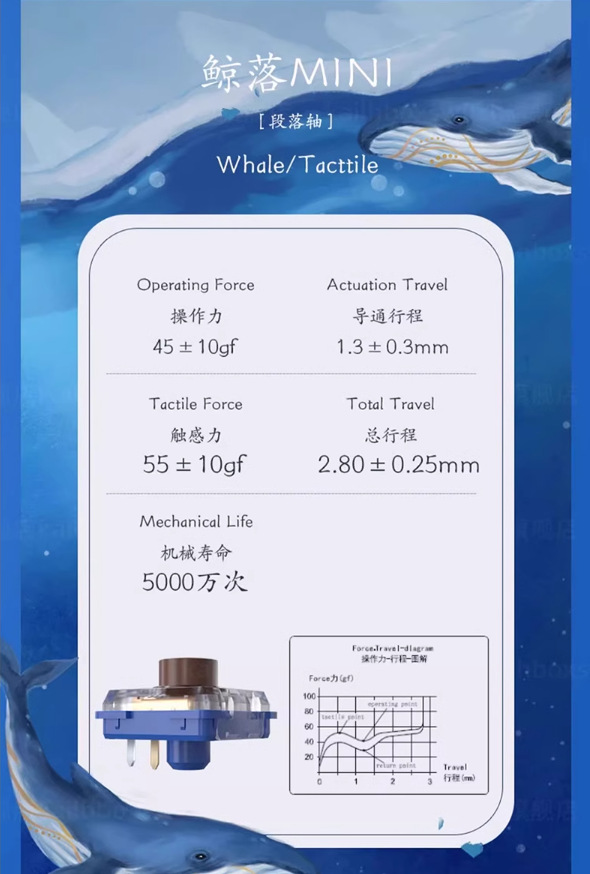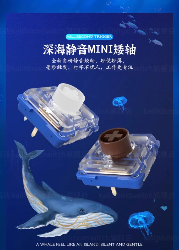 Kaihua Kailh 무음 낮은 샤프트 소음기 조용한 기계식 키보드 심해 섬 고래 MINI 1353Hitbox