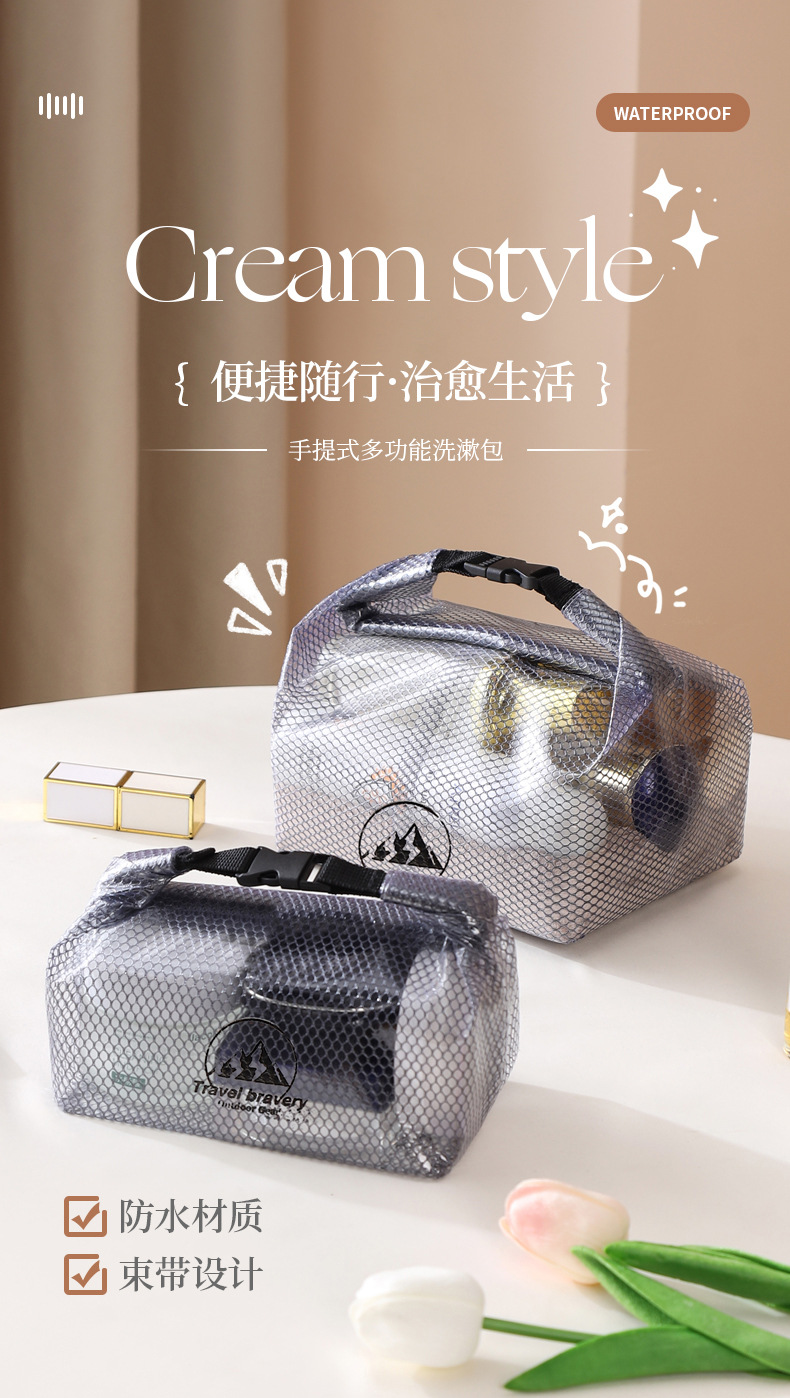 새로운 방수 보관 가방, 고급스러운 방오 및 얼룩 방지 PVC 화장품 보관 가방, 야외 휴대용 보관 가방