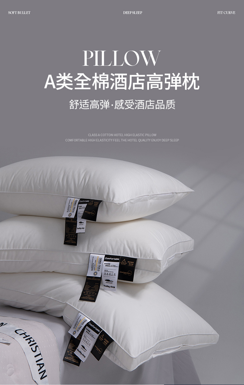 숙면과 경추 보호를 돕는 A급 면 호텔 베개 코어, 호텔 및 B&B 가정용, 싱글 풀 헤드 한 쌍 도매스토어 가기