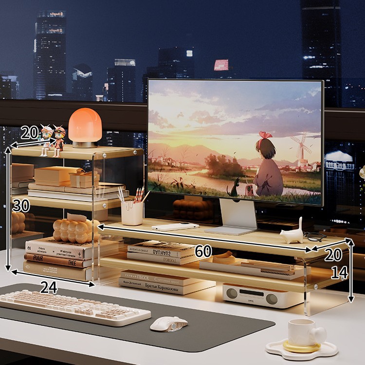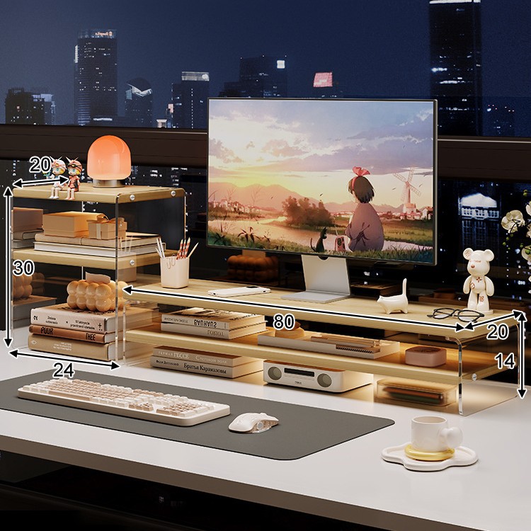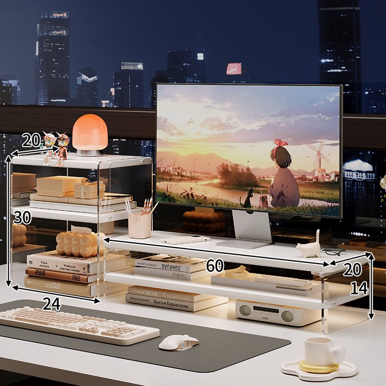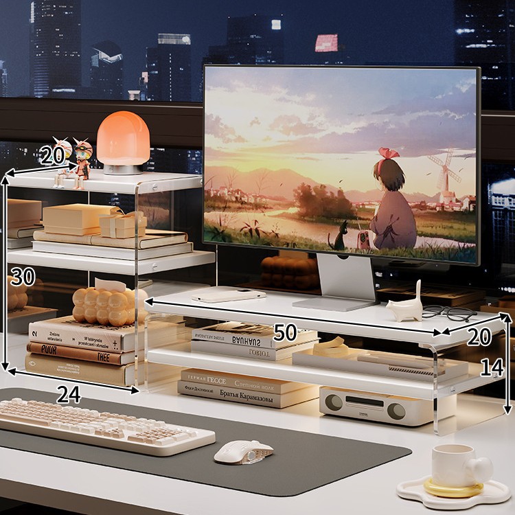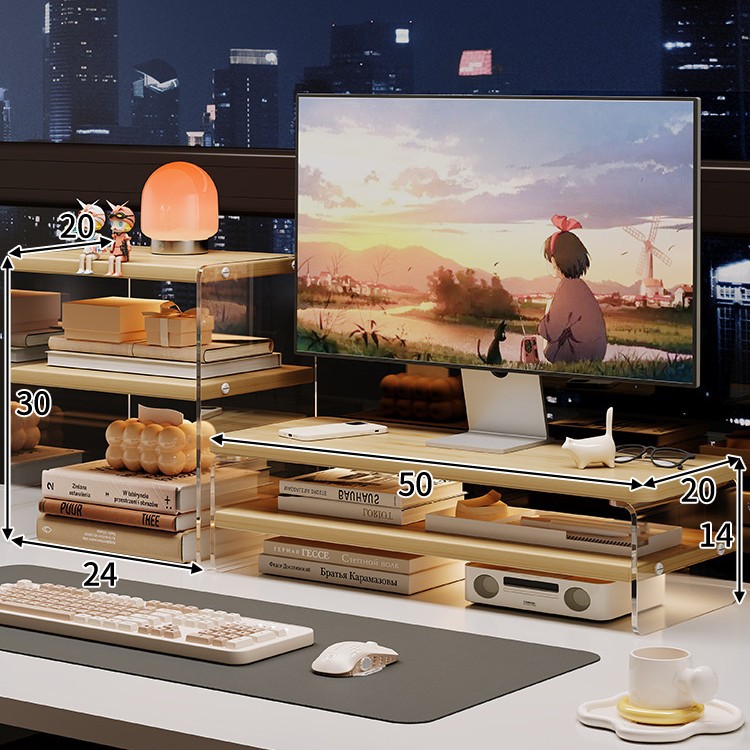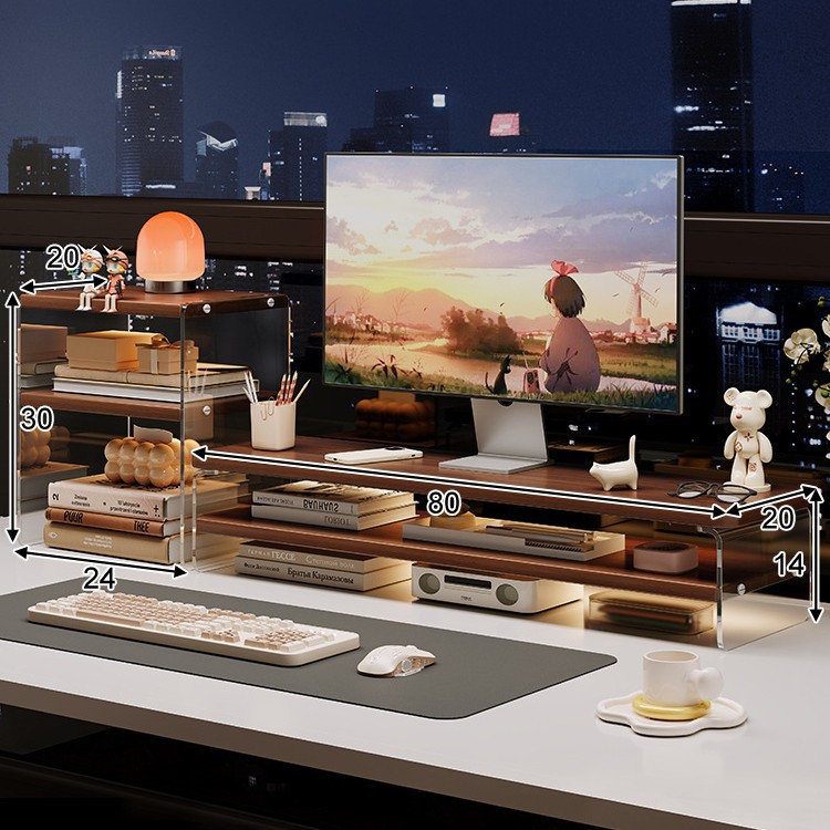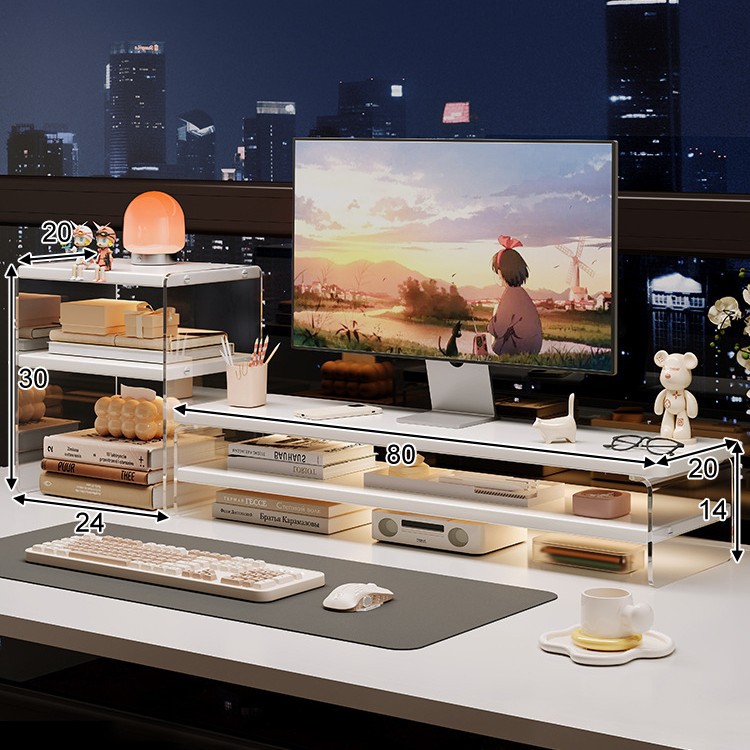 데스크톱 컴퓨터 높은 랙 디스플레이 아크릴 데스크탑 스토리지 랙 노트북 스탠드 사무실 책상 보관 아티팩트