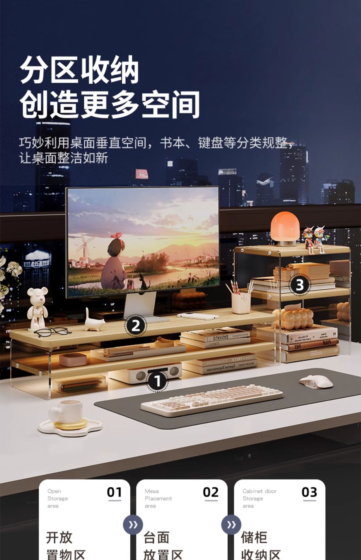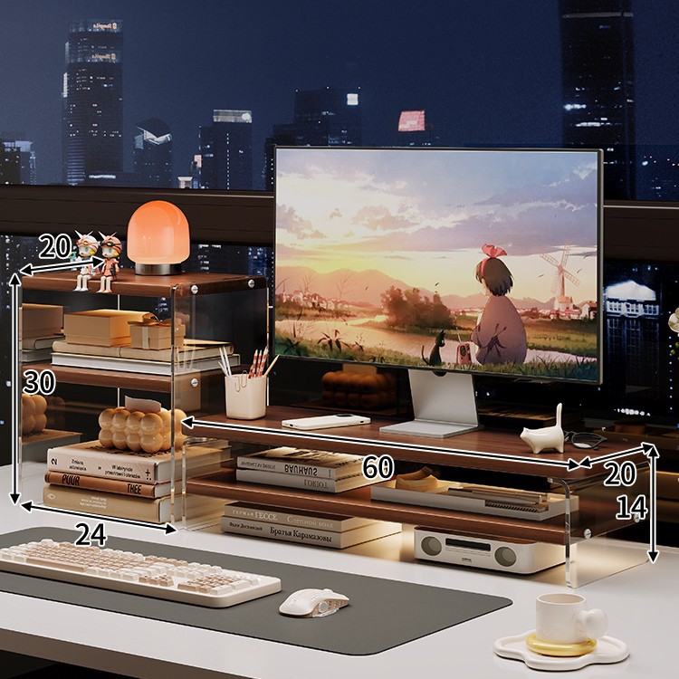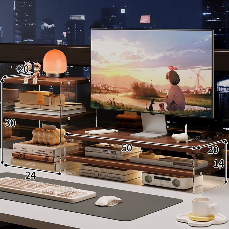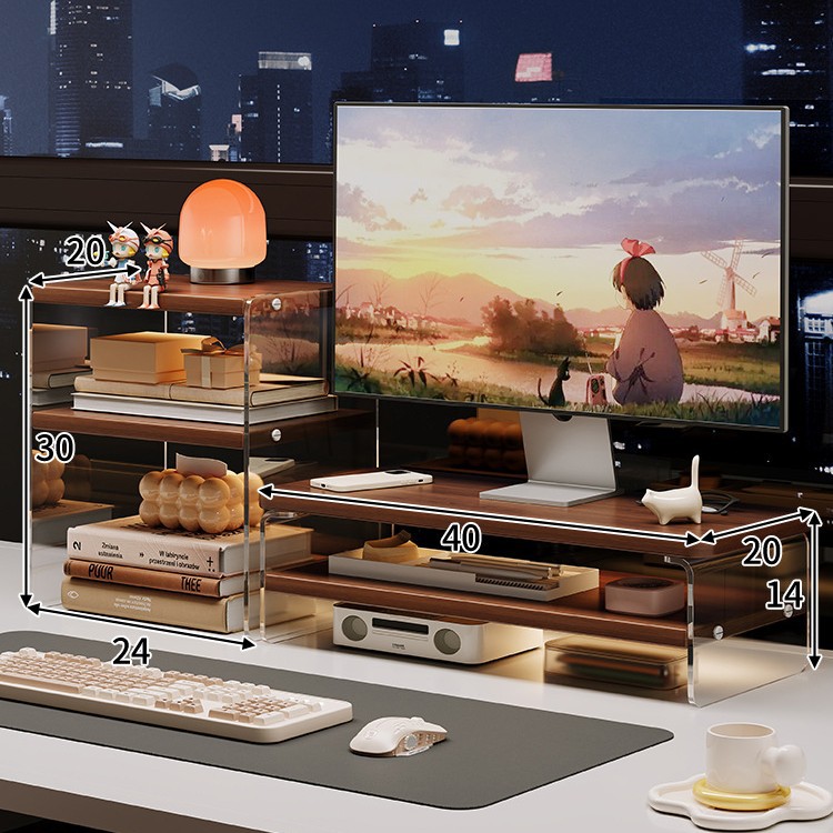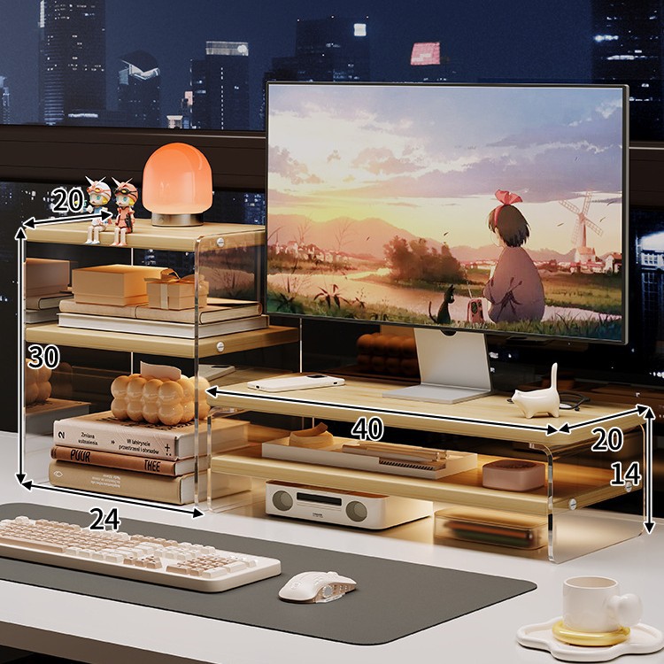데스크톱 컴퓨터 높은 랙 디스플레이 아크릴 데스크탑 스토리지 랙 노트북 스탠드 사무실 책상 보관 아티팩트