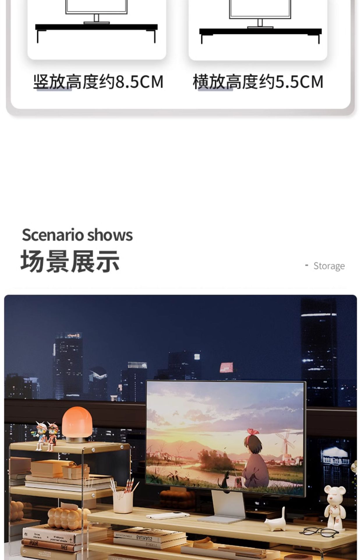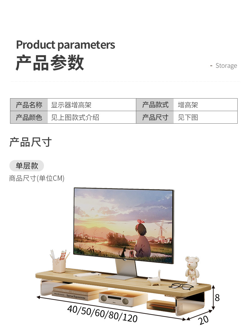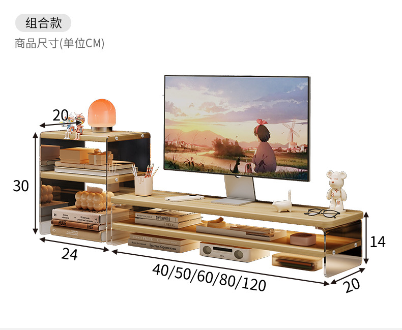데스크톱 컴퓨터 높은 랙 디스플레이 아크릴 데스크탑 스토리지 랙 노트북 스탠드 사무실 책상 보관 아티팩트스토어 가기