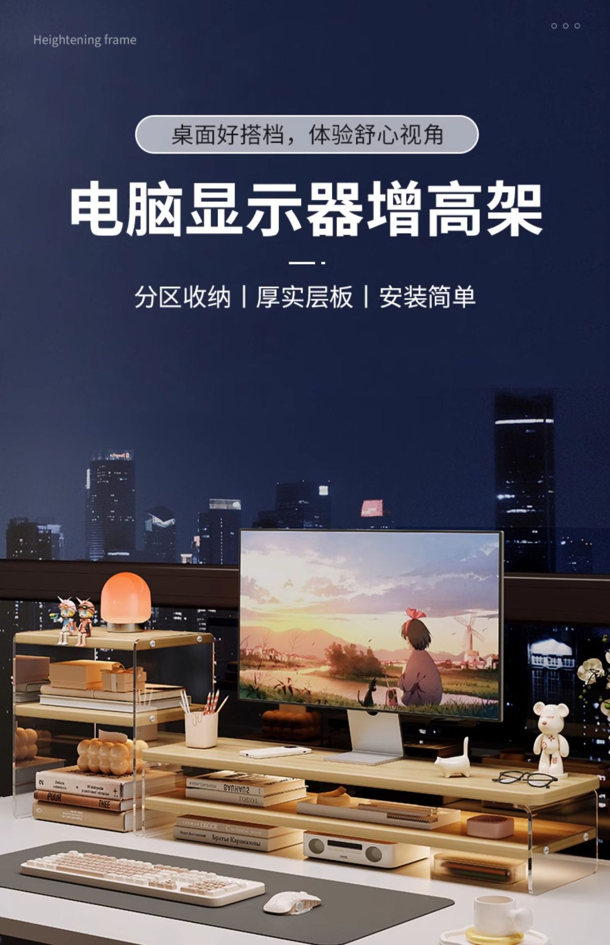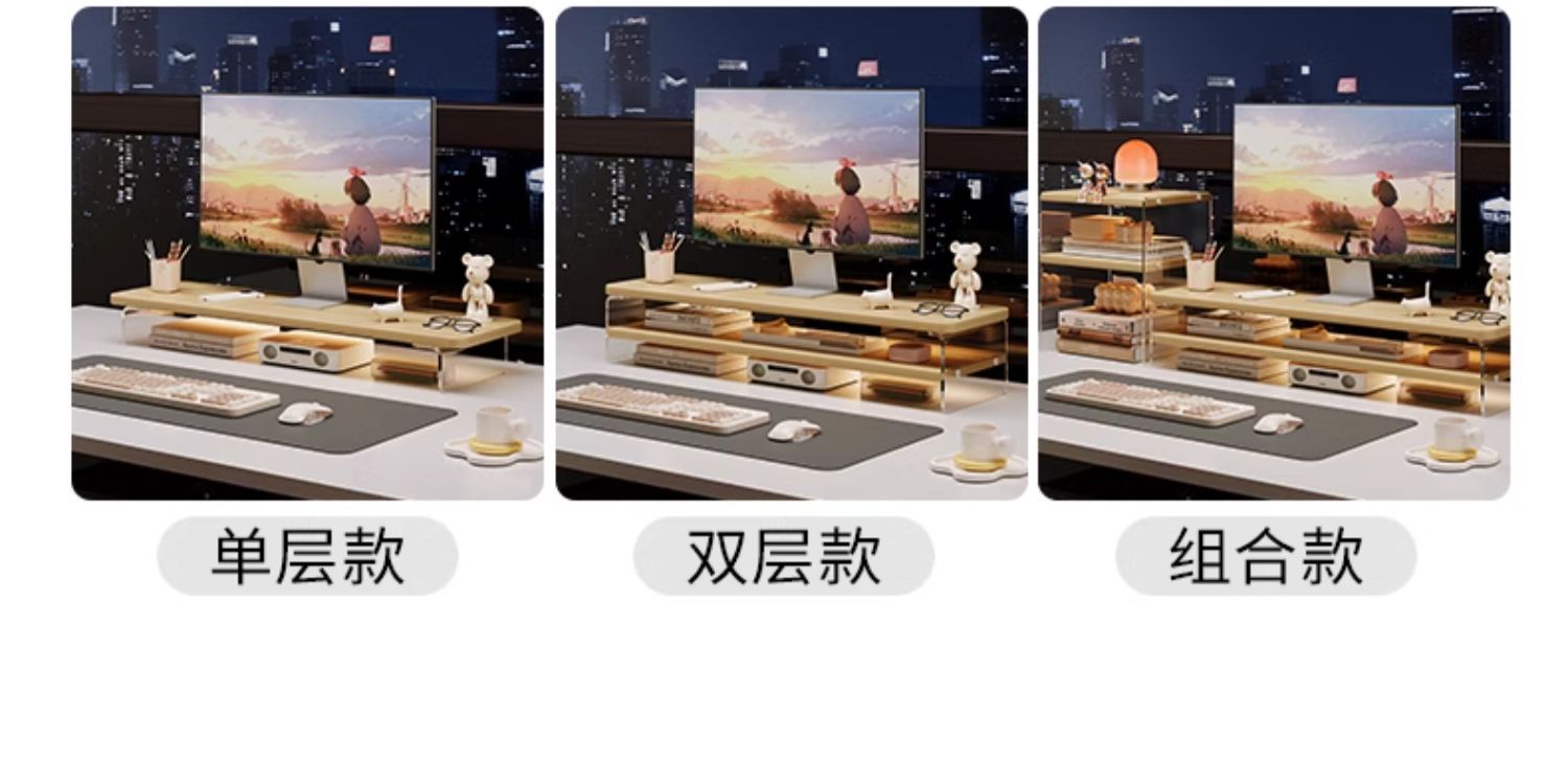 台式电脑增高架显示器亚克力桌面置物架笔记本支架办公桌收纳神器