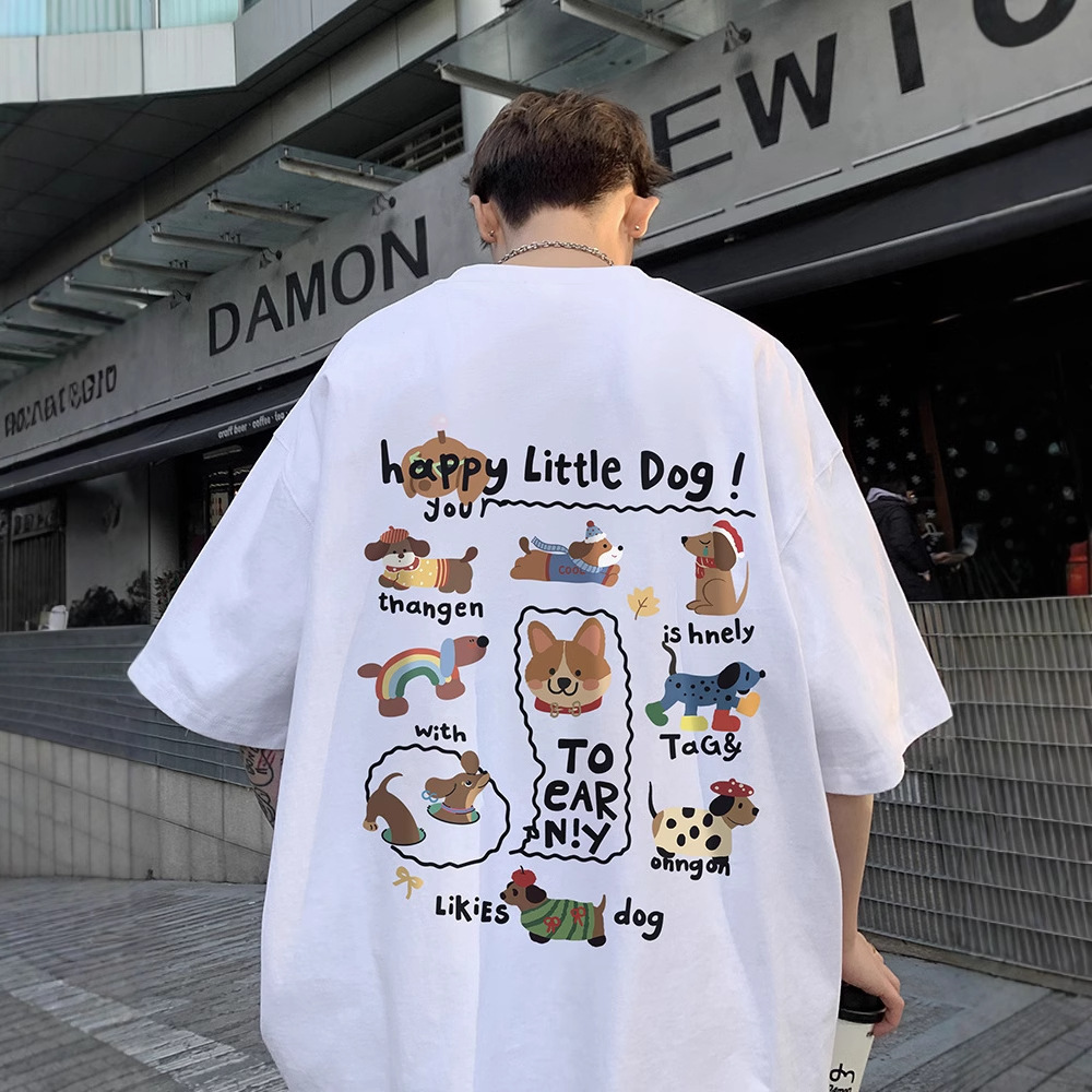 개 프린트 반팔 티셔츠 남성 여름 2025 새로운 미국 패션 브랜드 트렌디 루즈 청소년 학생 의류스토어 가기