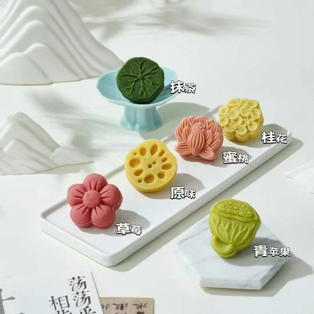 전통 중국 녹콩 케이크 연꽃 연못 녹색 사과 멀티 맛 크랜베리 셔벗 새로운 중국 패스트리 애프터눈 티 스낵