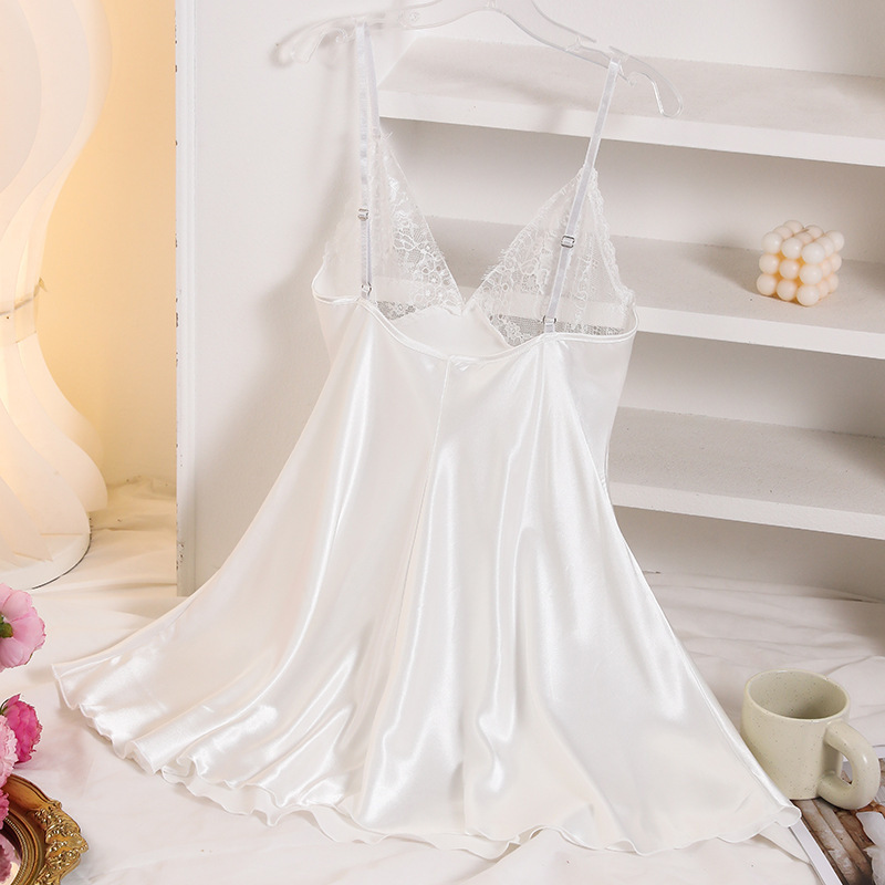 국경을 넘는 유럽과 미국 스타일의 새로운 섹시한 얼음 실크 중공 서스펜더 잠옷, 통기성이 뛰어난 캐주얼 홈웨어, 맞춤형 백리스 잠옷스토어 가기