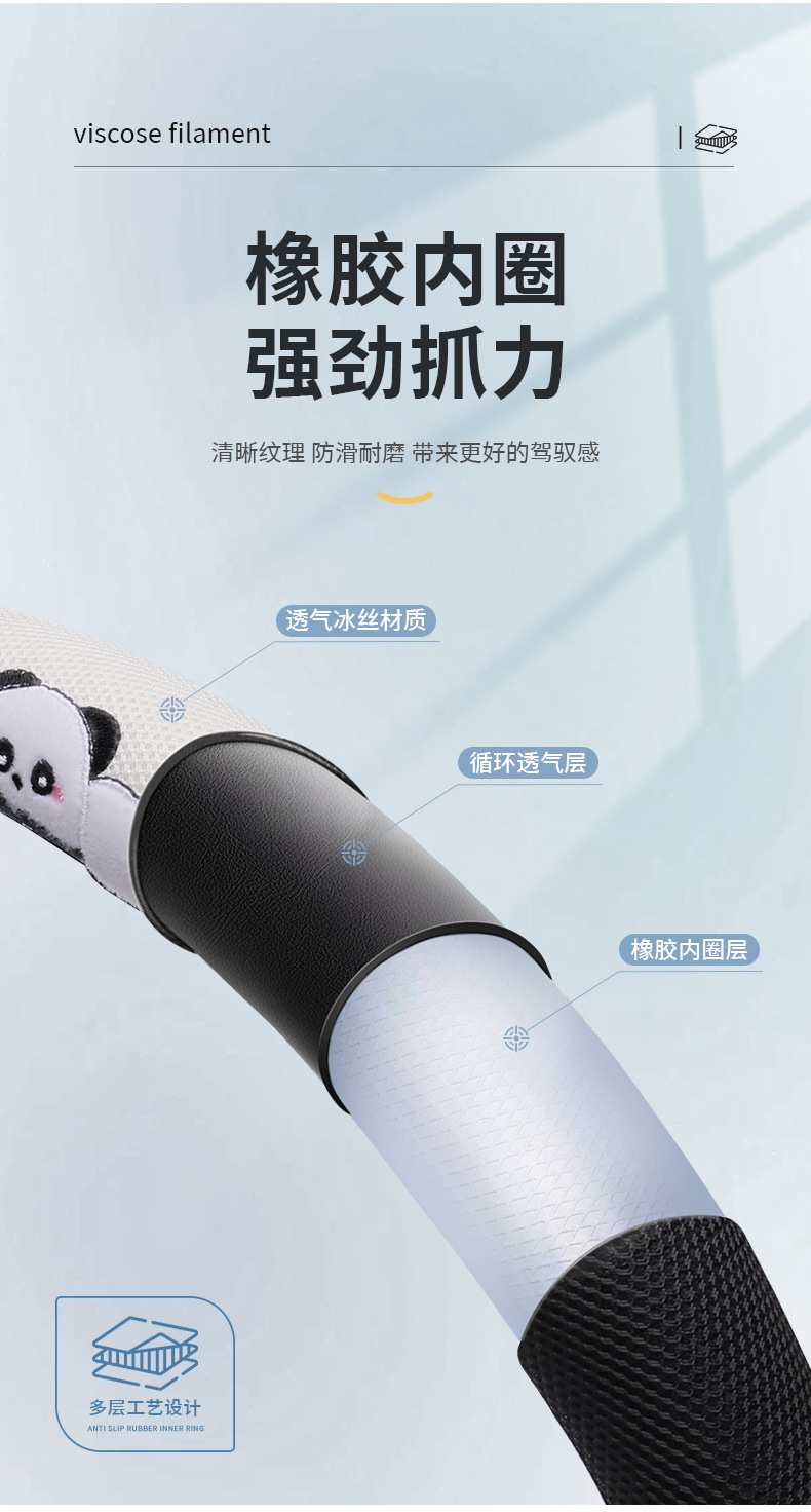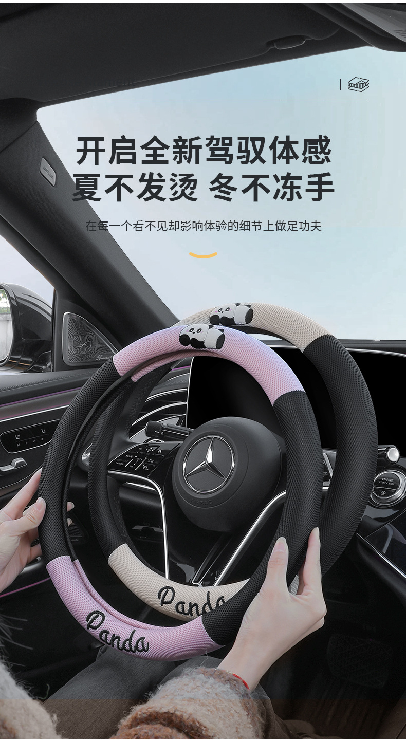 새로운 스티어링 휠 커버 얼음 실크 만화 남성과 여성의 올 시즌 자동차 핸들 커버 여름 자동차 미끄럼 방지 통기성 핸들 커버