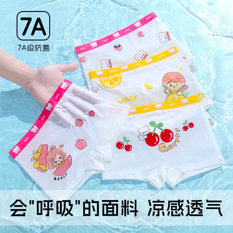 어린이 속옷 여름 여아 아이스 실크 복서 아기 소녀 중소 어린이 4 코너 복서 통기성 얇은 반바지