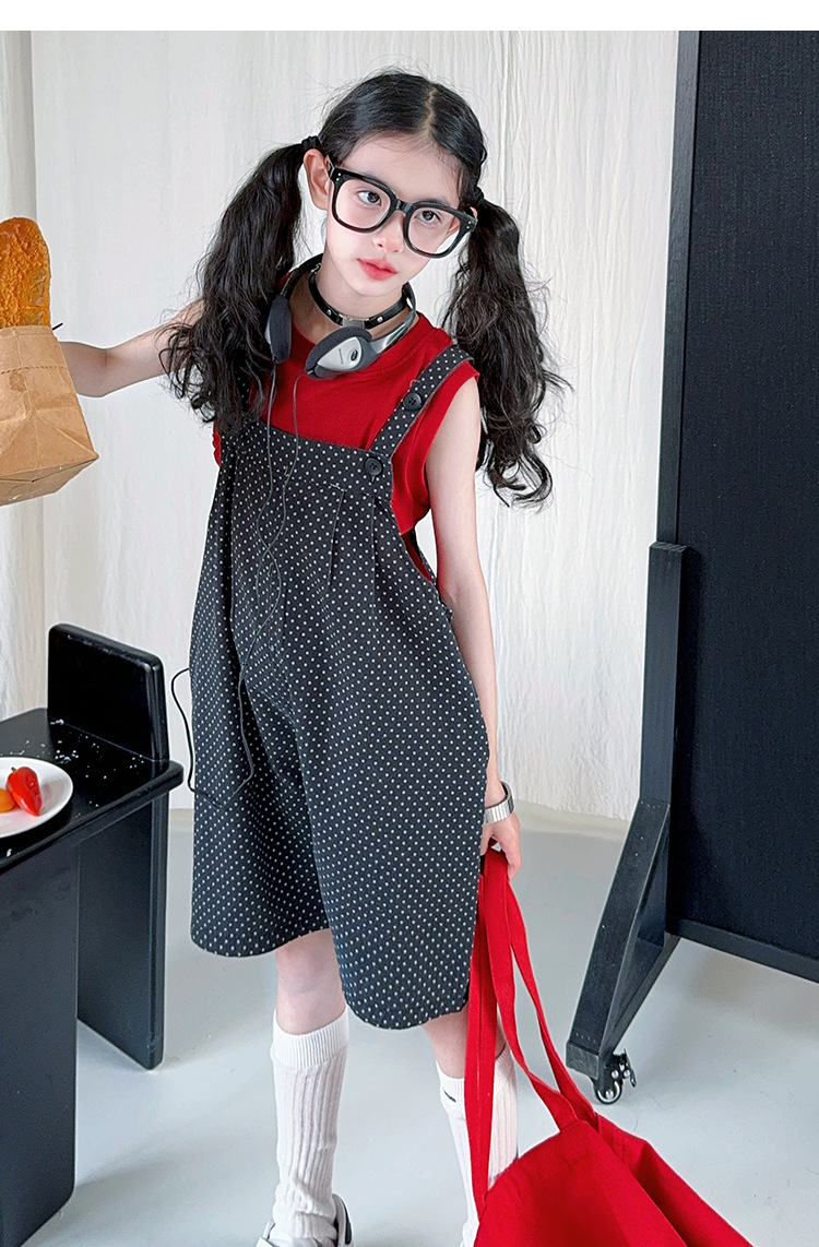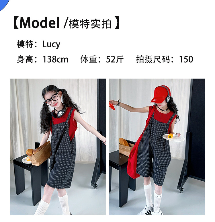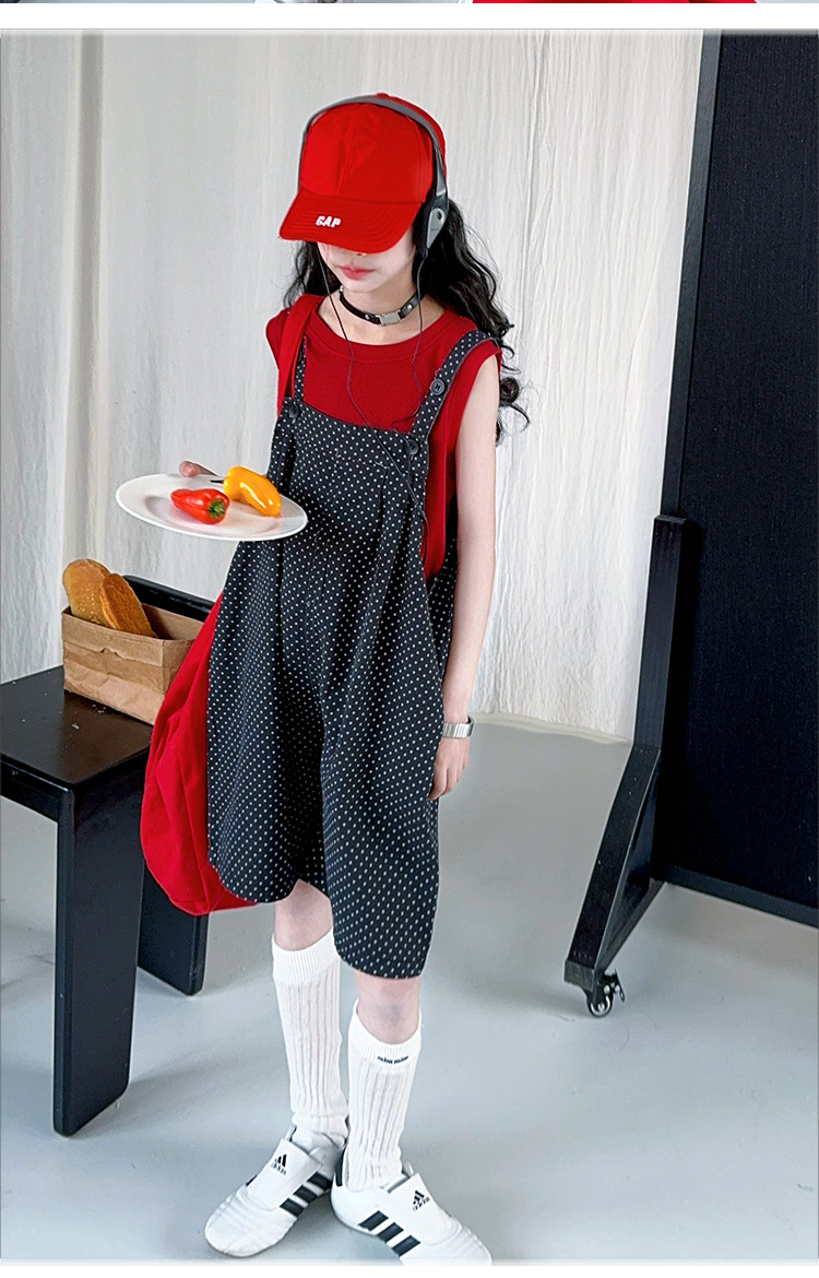 여자 여름 스타일 서스펜더 바지 정장 2025 여자 여름 조끼 바지 투피스 세트 인터넷 연예인 큰 아동복