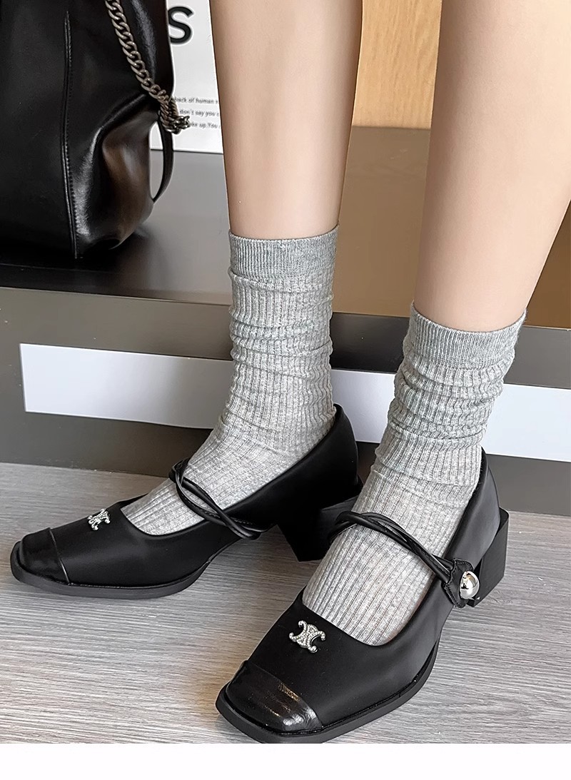 발레 스타일 미우 스타일 송아지 양말 회색 다리 스키니 수직 스트라이프 스택 한국 스타일 일본 스타일 봄과 여름 얇은 통기성 스택