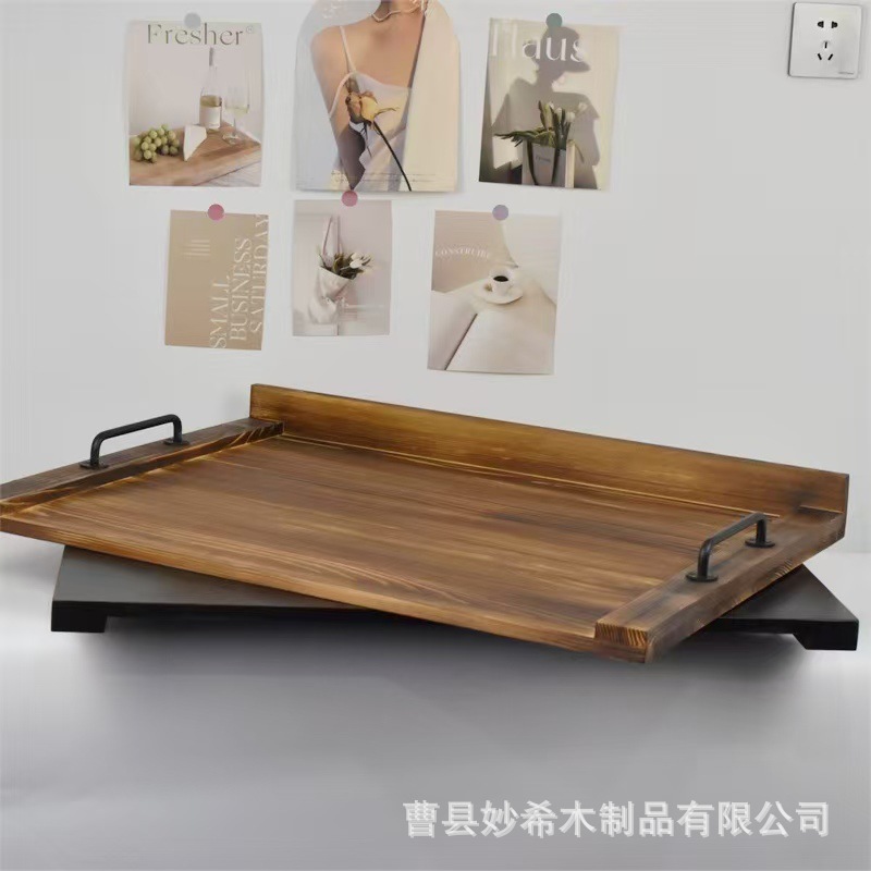단단한 나무 도마 스토브 손잡이 과일 빵 트레이 주방 단단한 나무 저장 랙을 가진 빈티지 가정용 트레이 커버