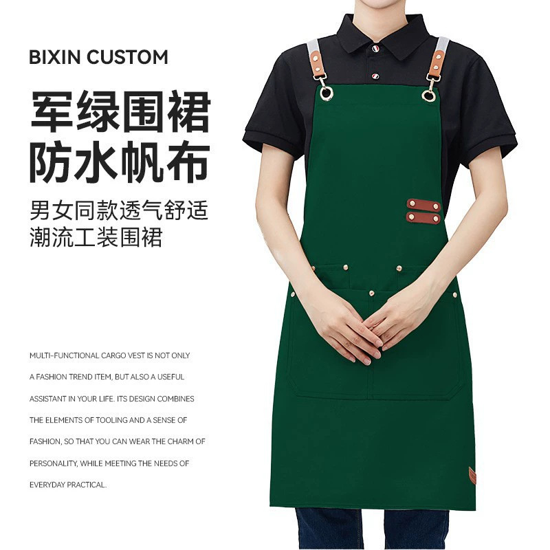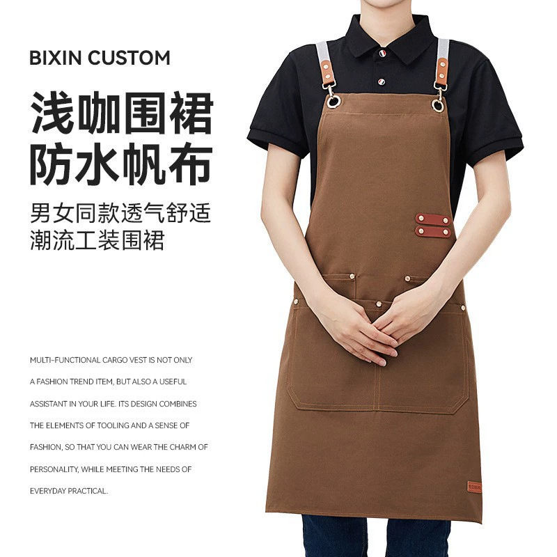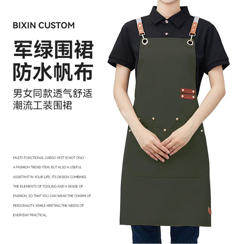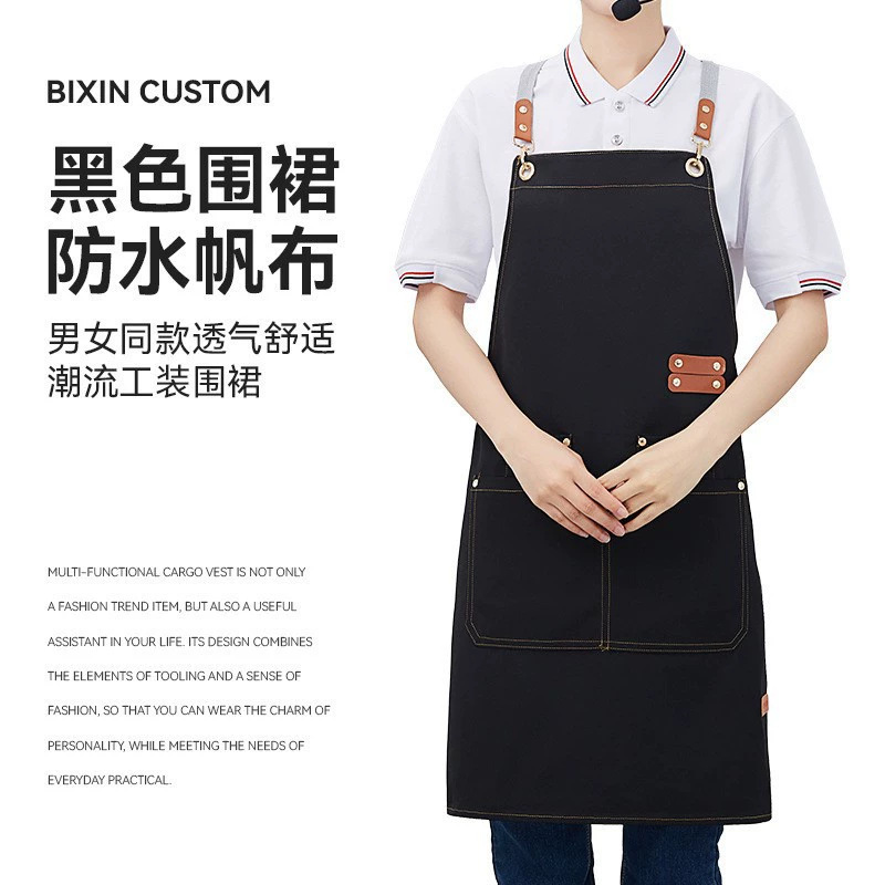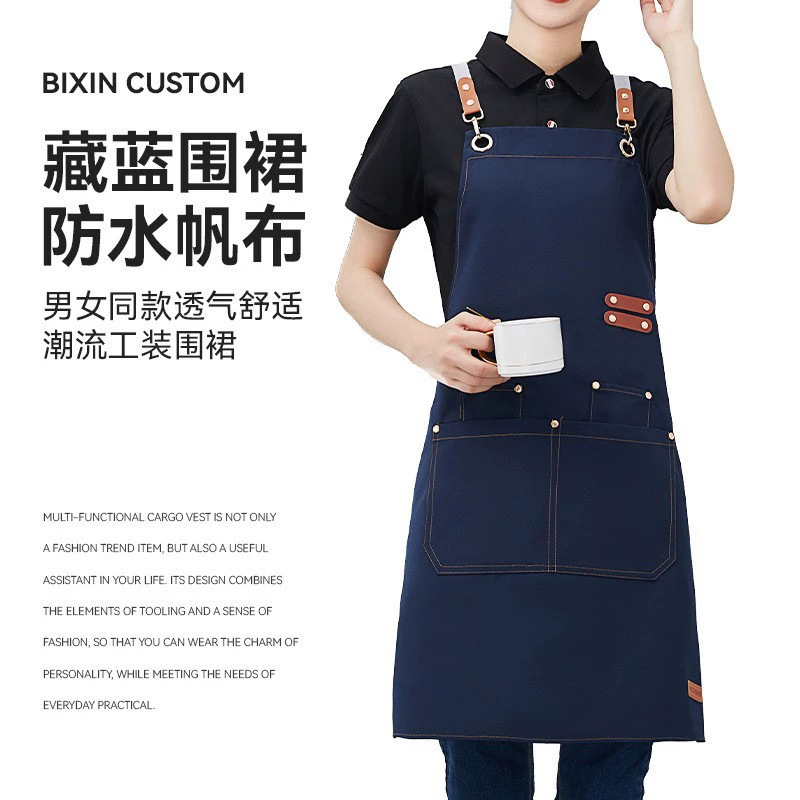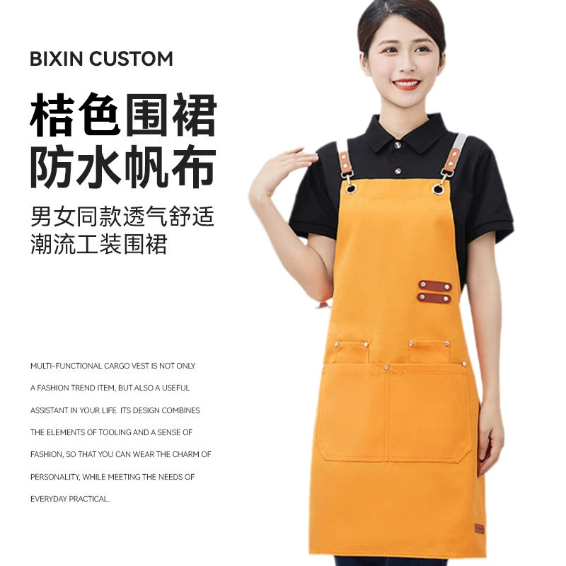 광고용 캔버스 앞치마 맞춤형 로고 인쇄 방수 방유 케이터링 커피숍 주방 가정용 앞치마 여성용 해외배송